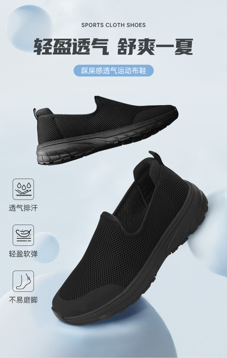 【踩屎感透气运动布鞋(付款后5天左右发)】轻盈休闲布鞋 镂空网面低帮通勤鞋一脚蹬运动鞋XB405