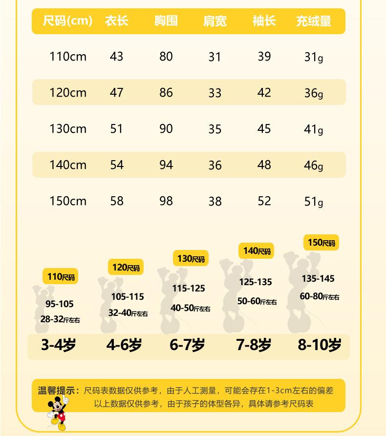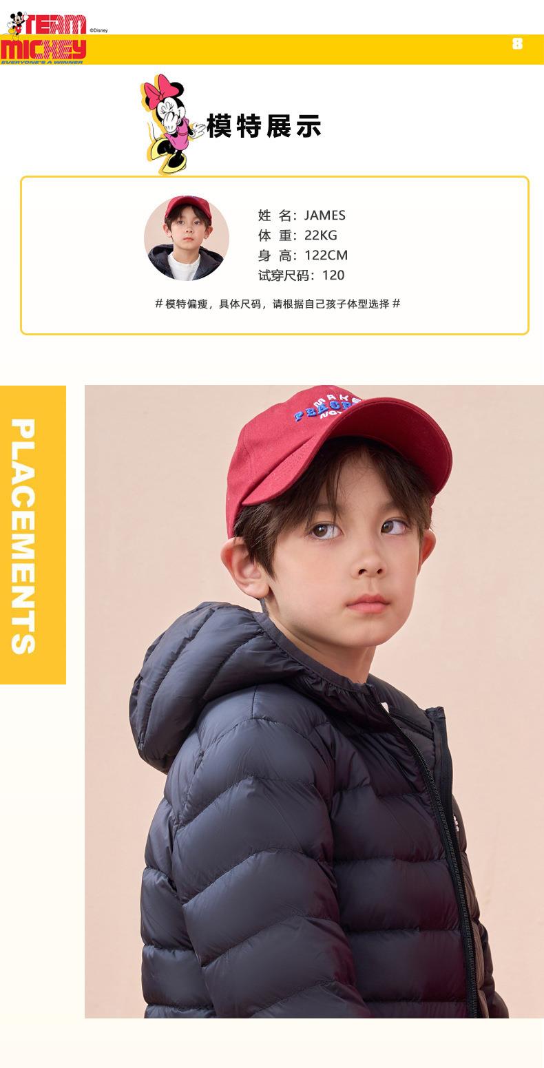 迪士尼儿童轻薄羽绒服国标90白鸭绒男女童韩版羽绒服保暖外套