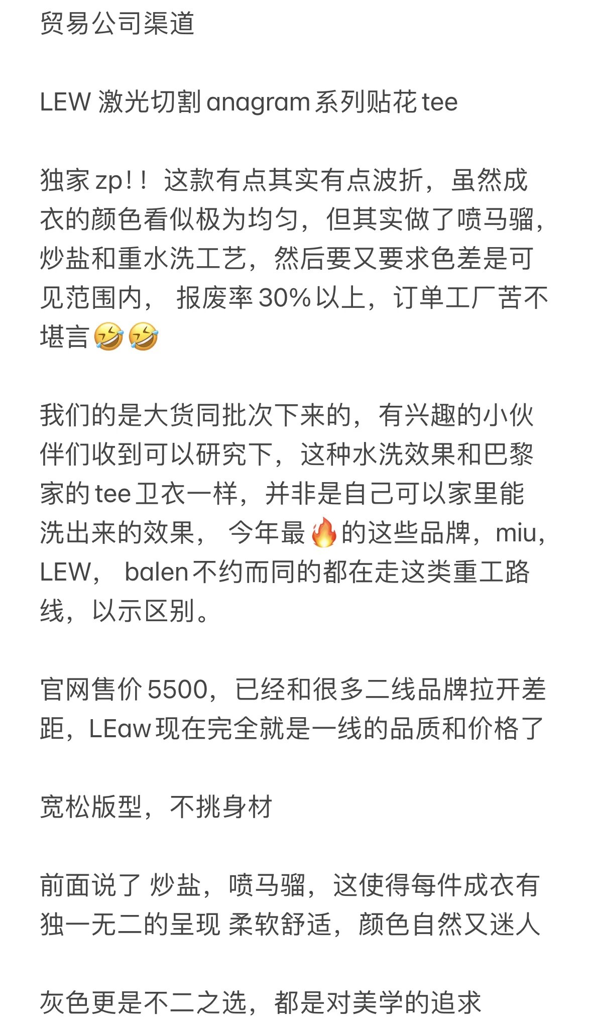 售完无补 贸易公司 LEW激光切割anagram系列贴花T恤 男女同款 低饱和炒盐做旧短袖