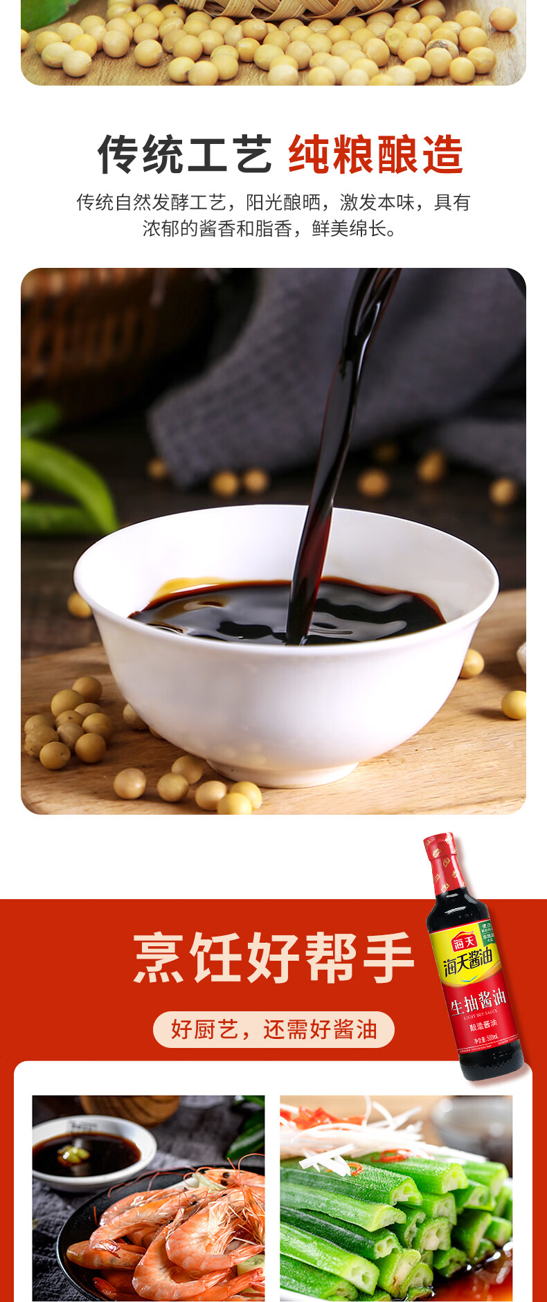 限时限量购【29.9抢!海天大礼包】家庭4件组合装,生抽酱油500ml,5度白醋450ml,味极鲜150ml,蔬之鲜调味料40g,新年礼盒年货礼盒