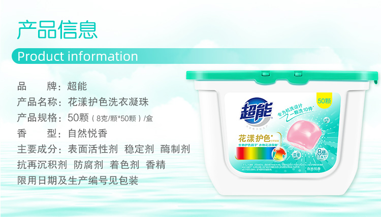 超能花漾护色洗衣凝珠50颗400g护色防串色留香持久盒装家用宿舍 2盒