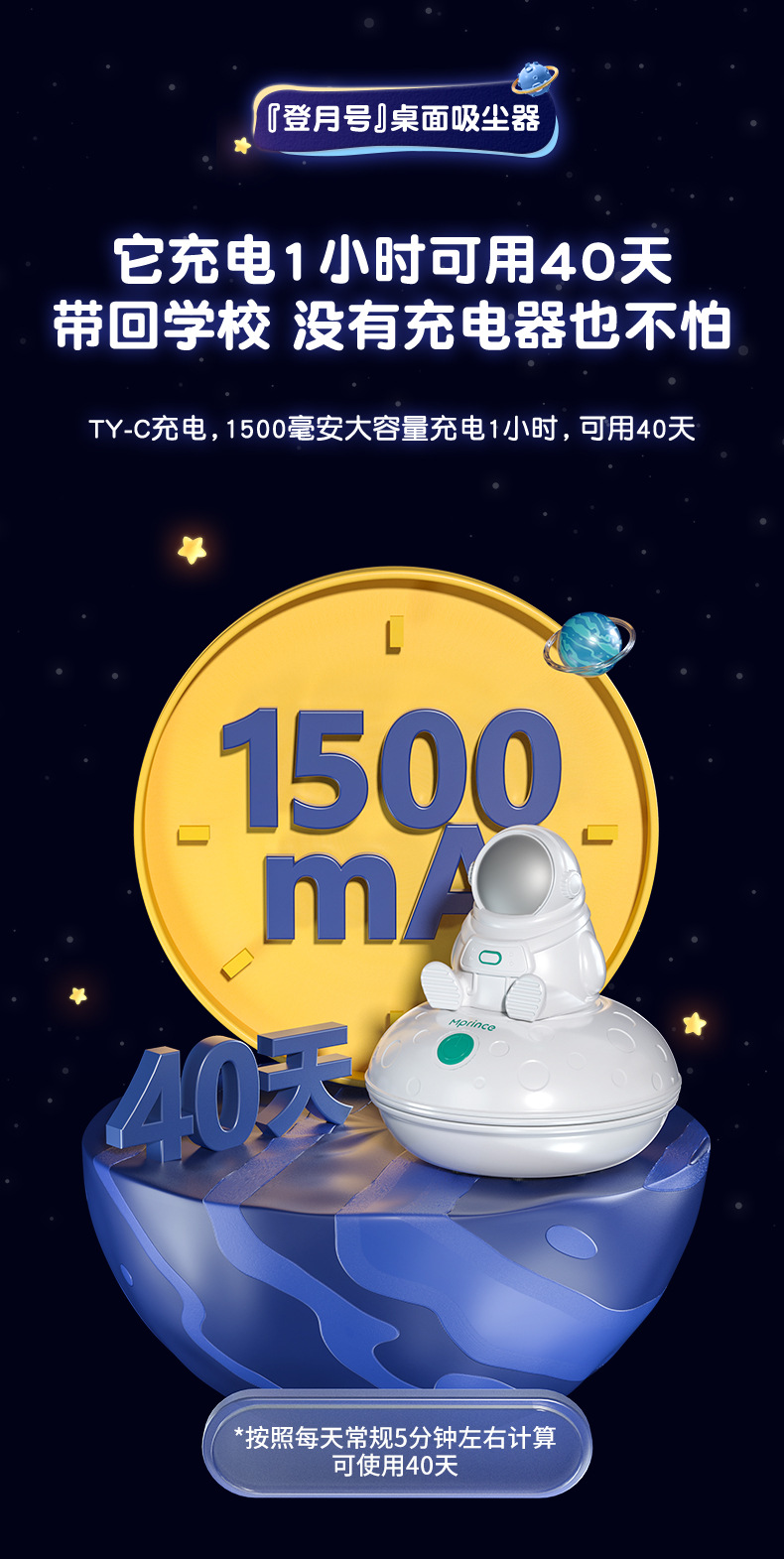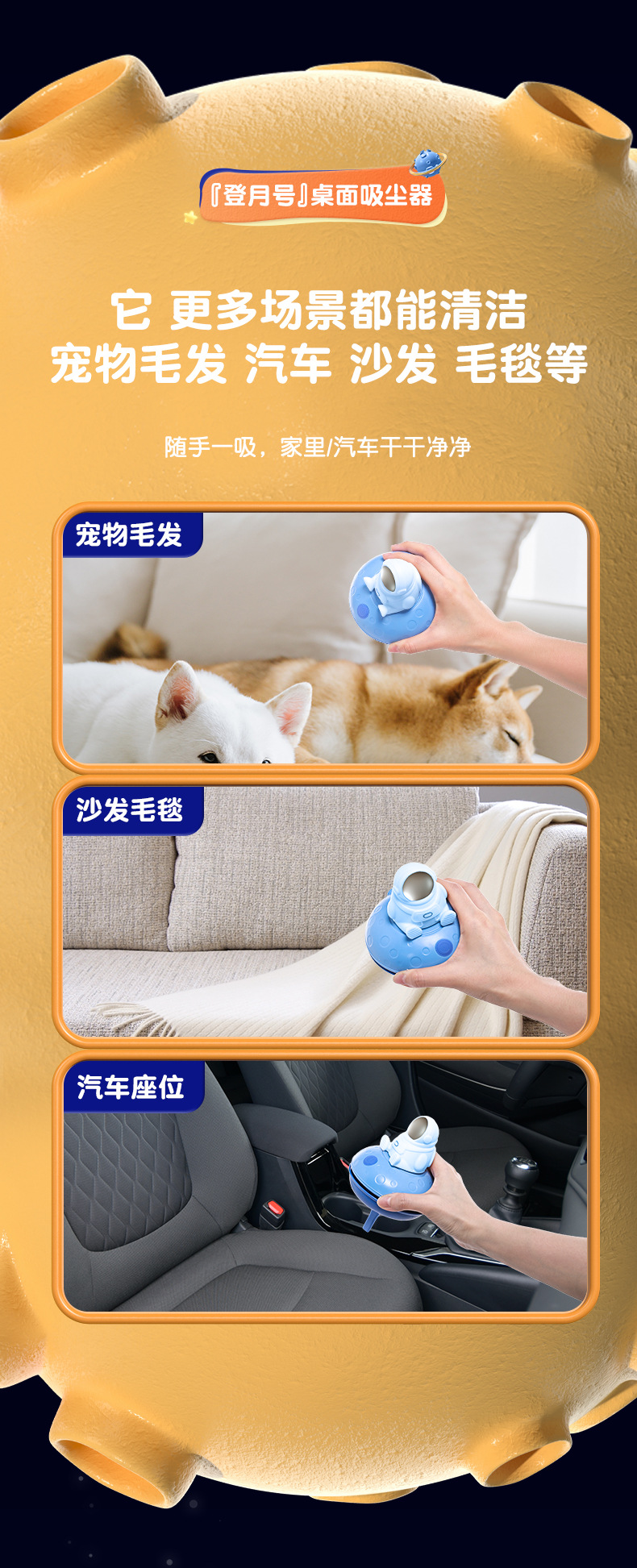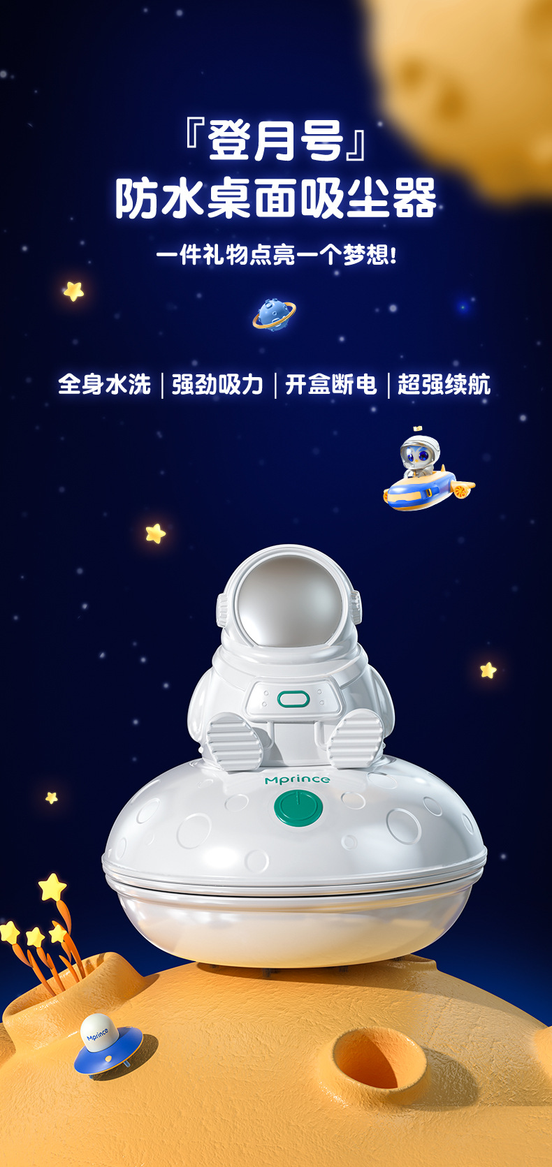 【春节不打烊】【第二代涡轮大吸力 全身可水洗】UFO防水吸充电款猫太子桌面吸尘器文具大吸力电动防水手持车载吸尘器清洁神器