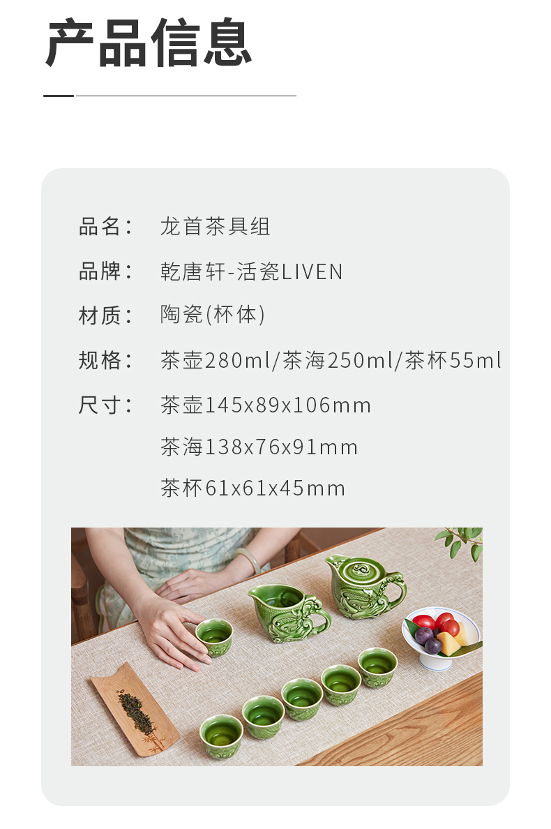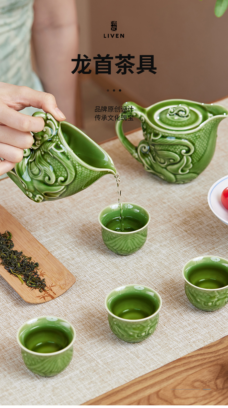 【茶具】龙首陶瓷茶具1壶6杯附茶海 壶280ml/杯55ml/海250ml