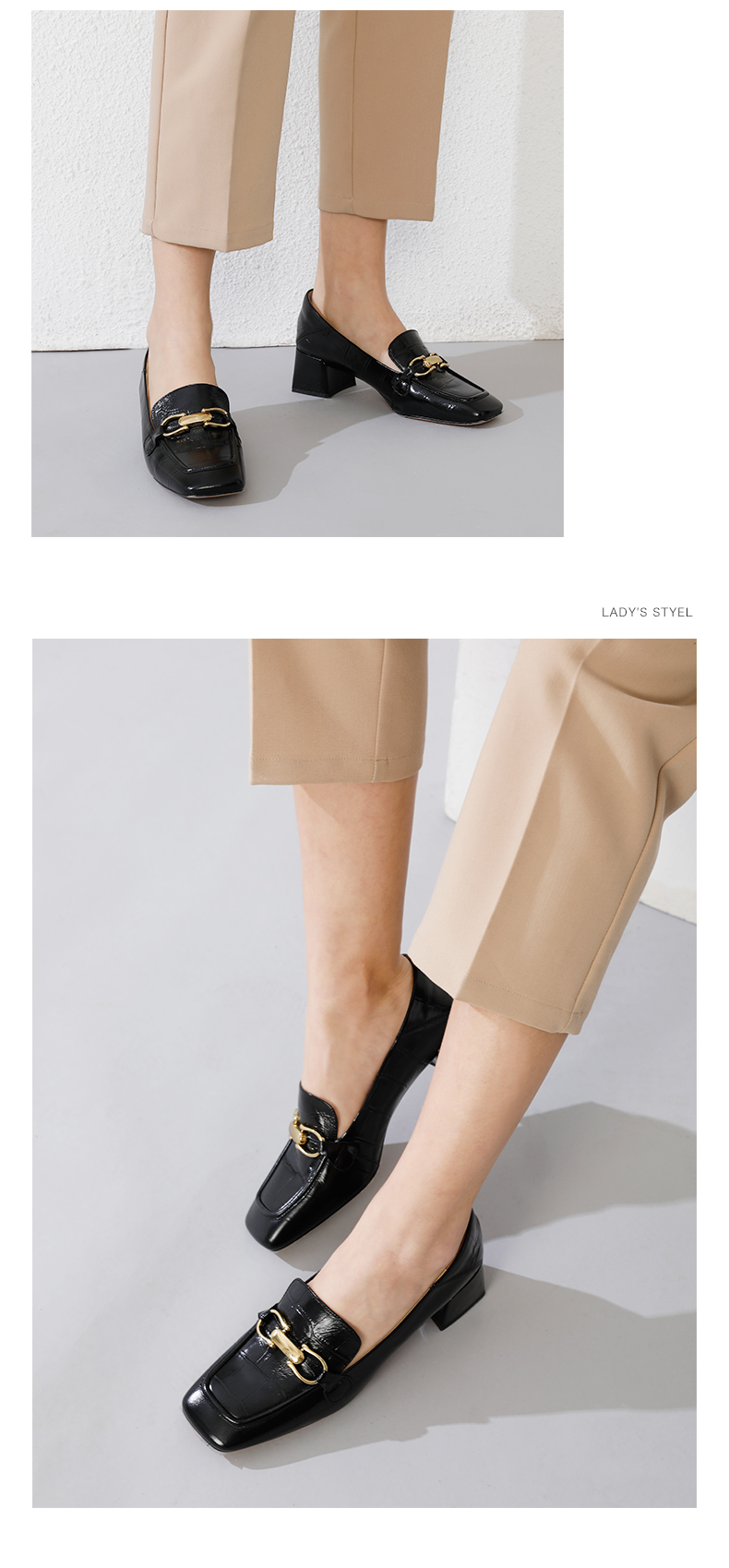 BAKERLOO英伦复古女鞋方跟圆头金属圆扣深口单鞋羊油皮休闲乐福鞋