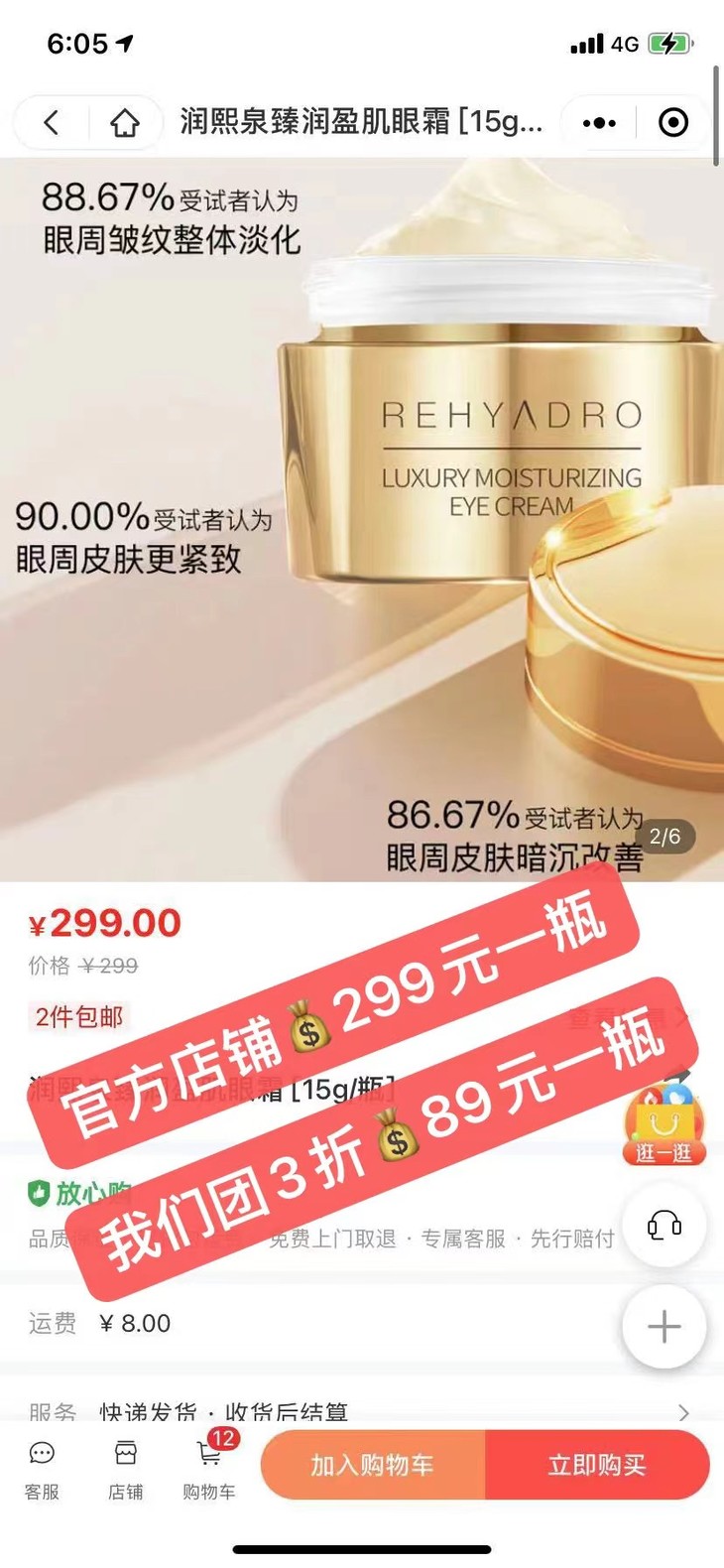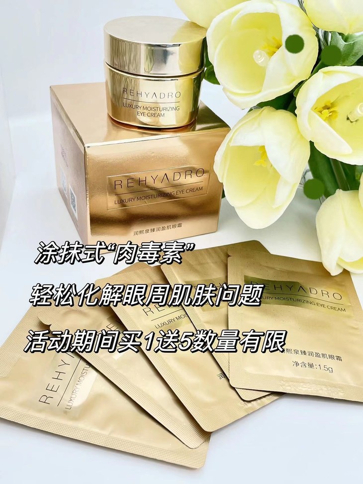贵妇级别的配方研发标准❗️ 媲美千元大牌产品的淡纹力,7天淡纹紧致,21天全面改善眼周问题,在家就能体验「眼部热玛吉」⚠️ 炼乳般质地,柔润丝滑! 滋润不黏腻,很好吸收! 【华熙生物润熙泉臻润盈肌眼霜15g】 重要的是官方299元/瓶 我们开团才:89元! 还送5个1.5g小样! 我自己囤了好几瓶! 眼霜是必备 !