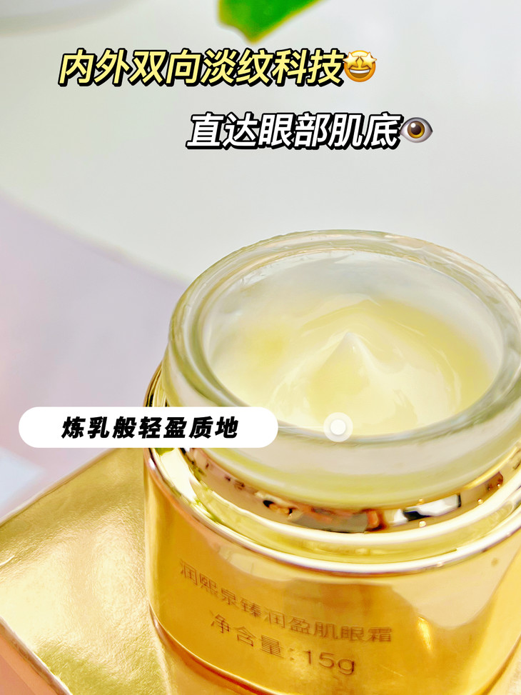 眼霜是需要长期坚持使用的护肤品,除了功效和成分,肤感也很重要。 润熙泉金熨斗眼霜不仅功效划分的精准细致,肤感也做的温柔细腻,不会因为成分功效强而忽视护肤的仪式感。