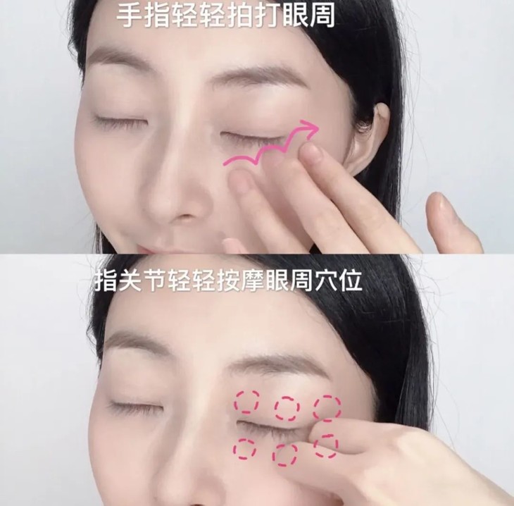Step4:手指轻轻拍打按压眼周,缓解眼部疲劳,去水肿