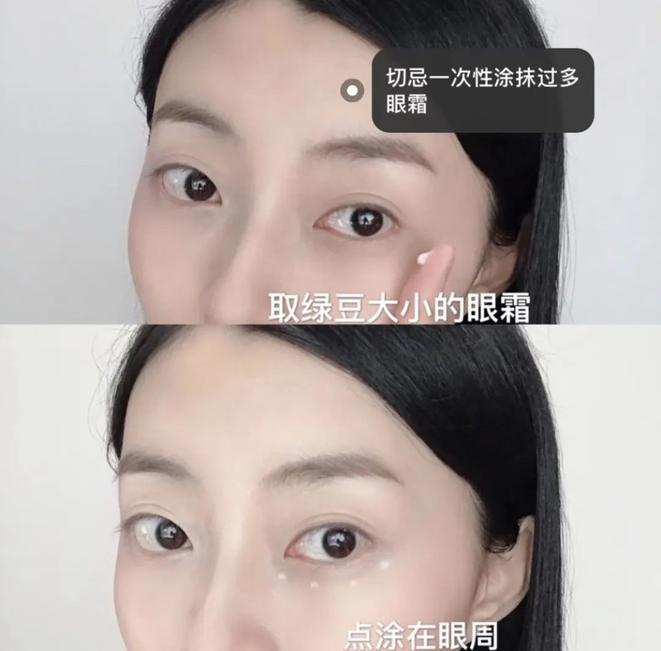 最后再来一起了解一下润熙泉金熨斗眼霜的正确使用方法吧: Step1:取绿豆大小的眼霜,轻轻点涂在眼周