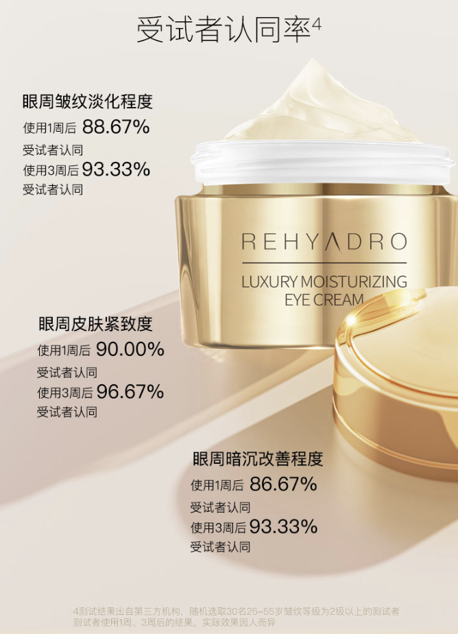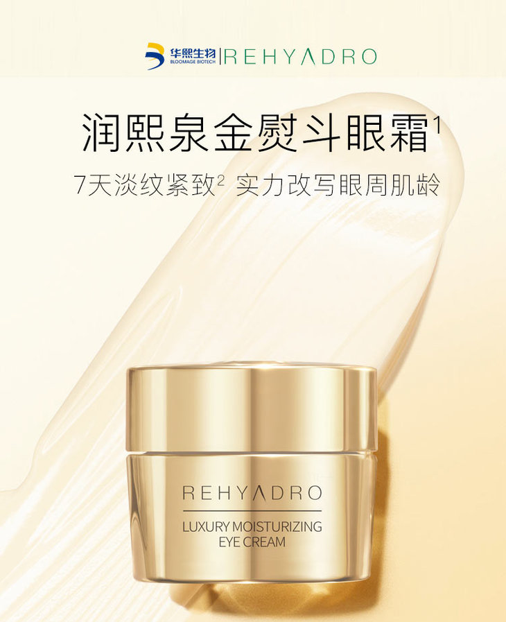 润熙泉这款金熨斗眼霜特别添加了华熙专利多重分子玻尿酸,精准照顾眼周各个层次的补水锁水,填充表面可见干纹。