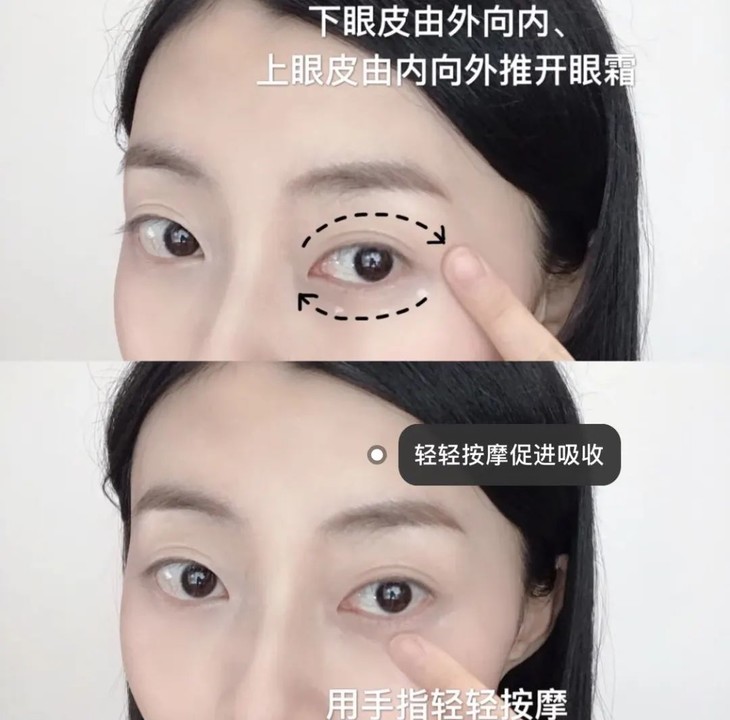 Step2:下眼皮从外向内、上眼皮从内到外地打圈按摩