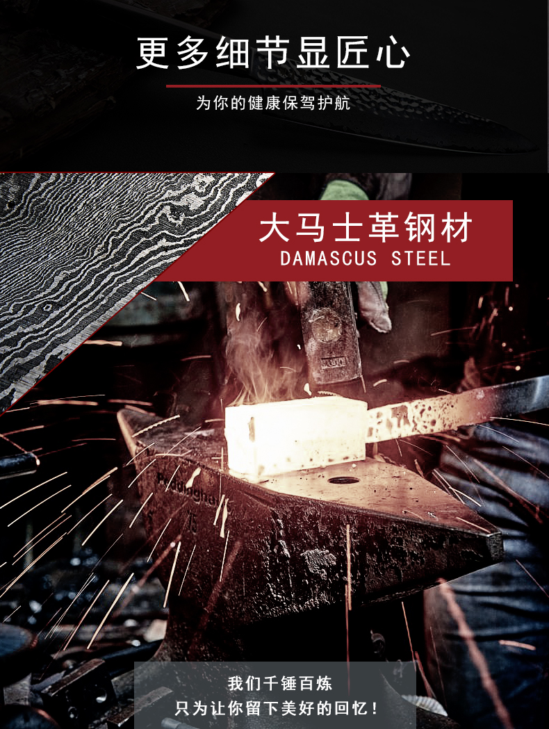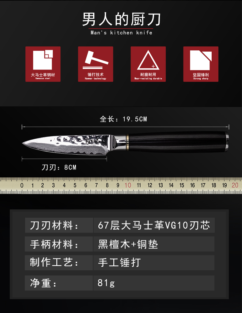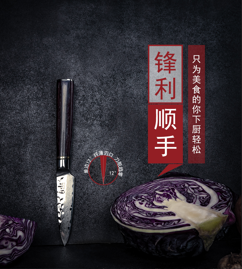 汉道【锤打大马士革水果刀】家用果皮刀厨房刀