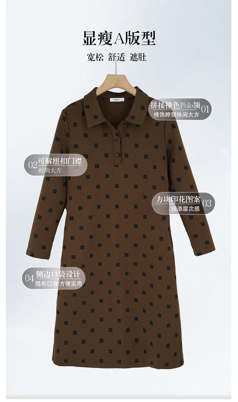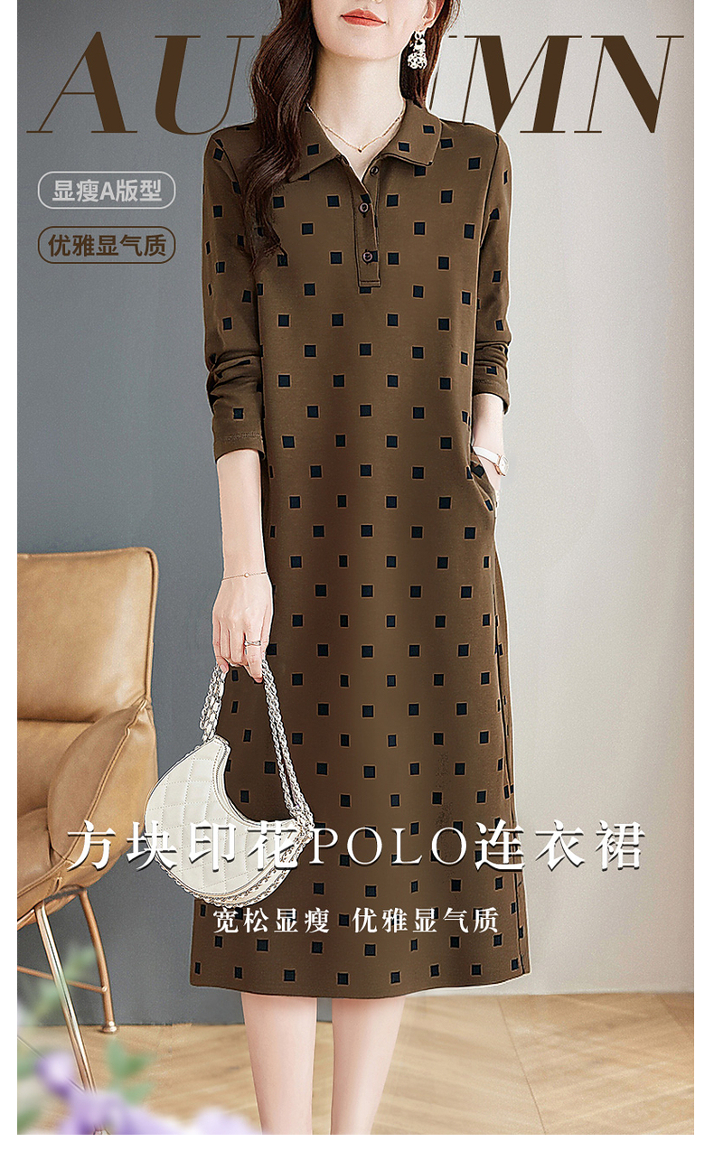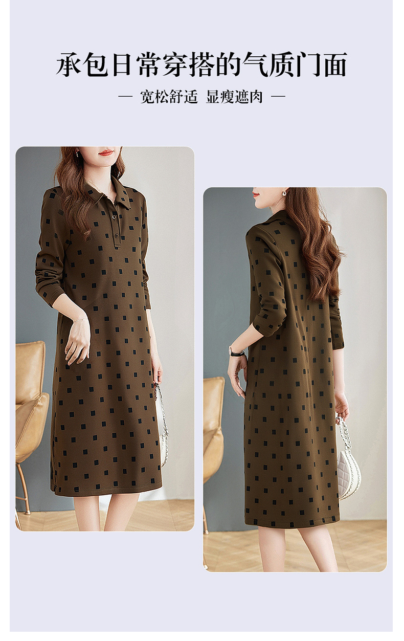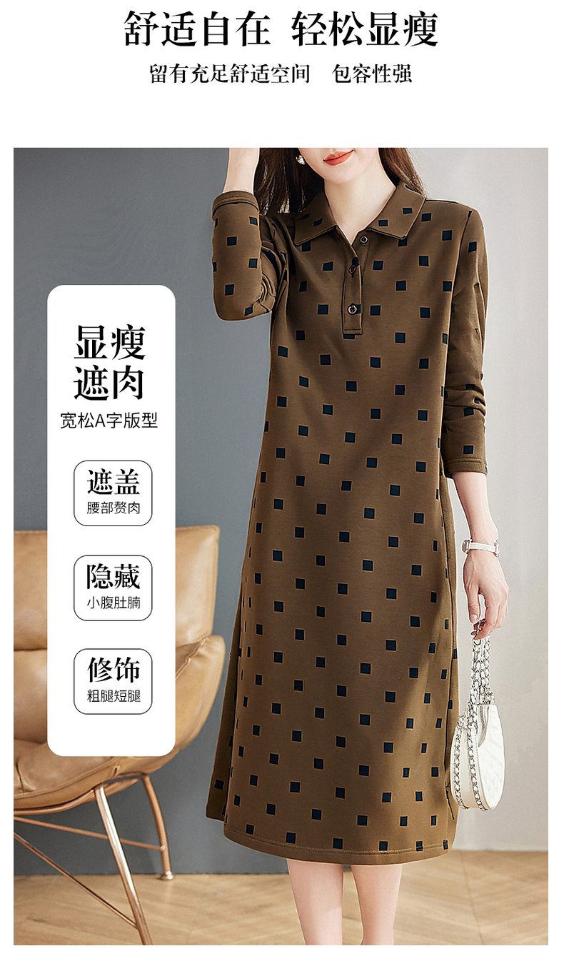 大码长袖连衣裙女秋季2026新款大码女装高级感polo领减龄T恤裙子