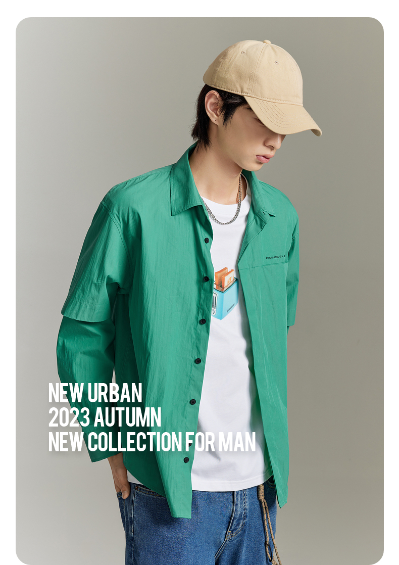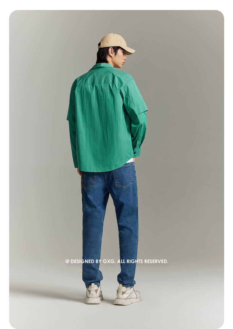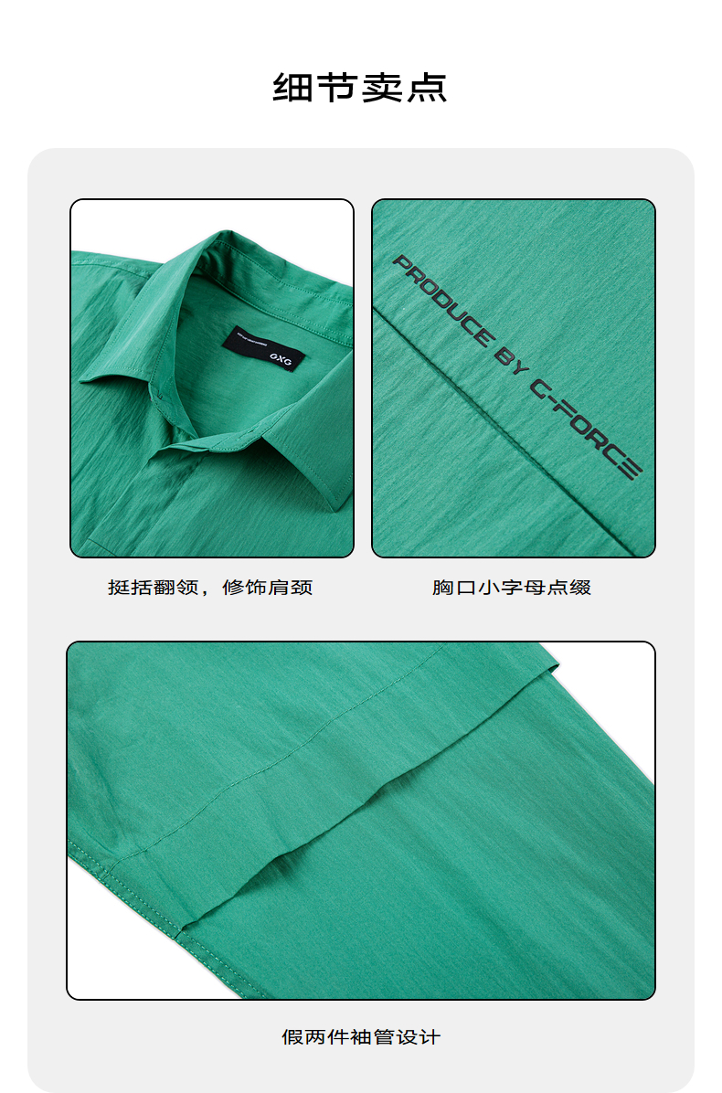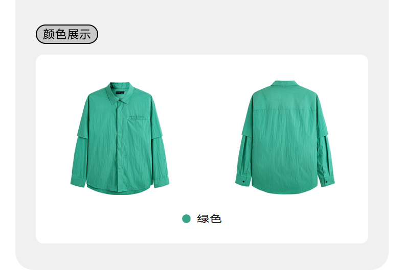 GXG男装 绿色假两件简约微廓衬衫时尚 热卖衬衫 GEX10314483