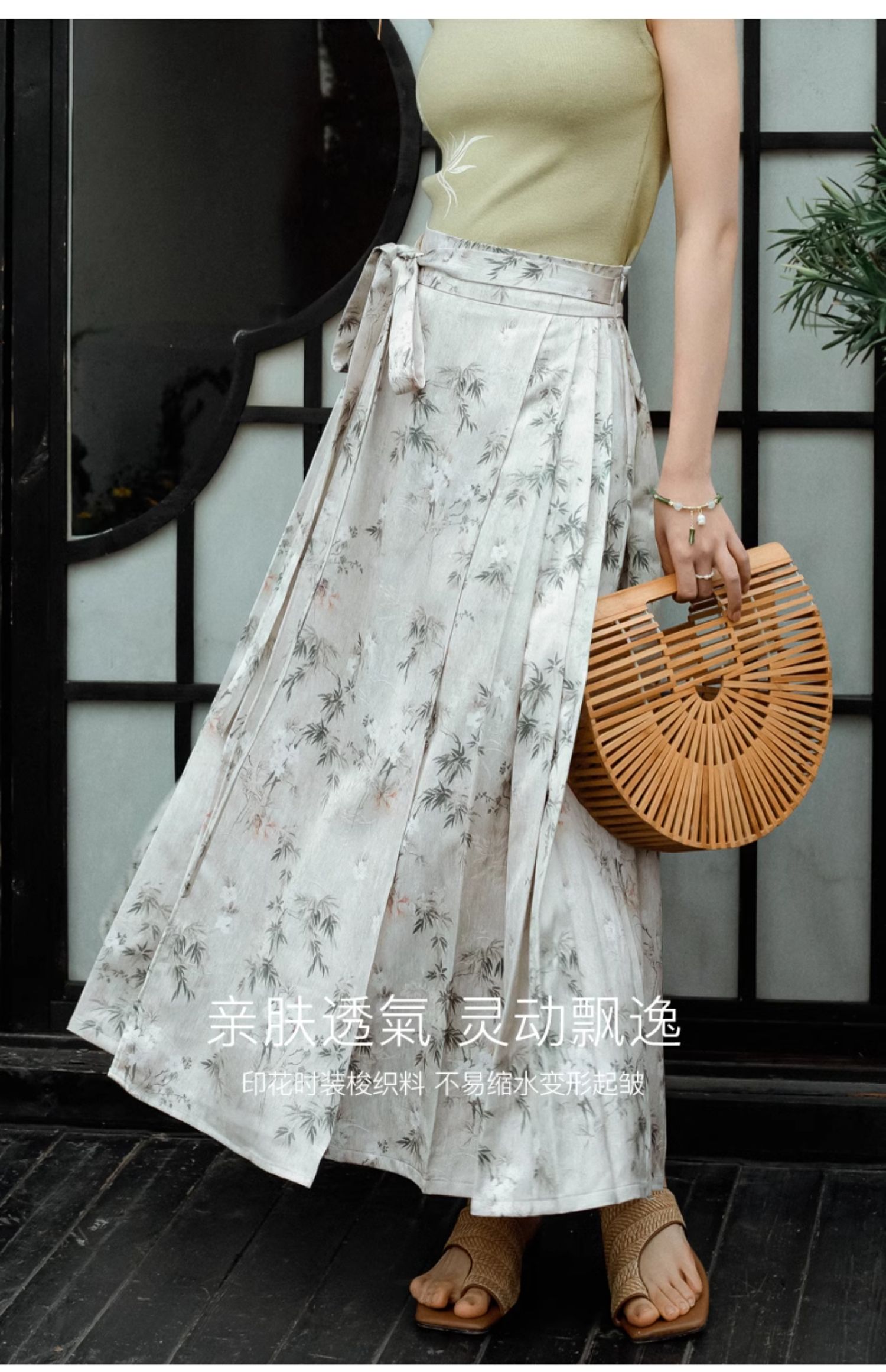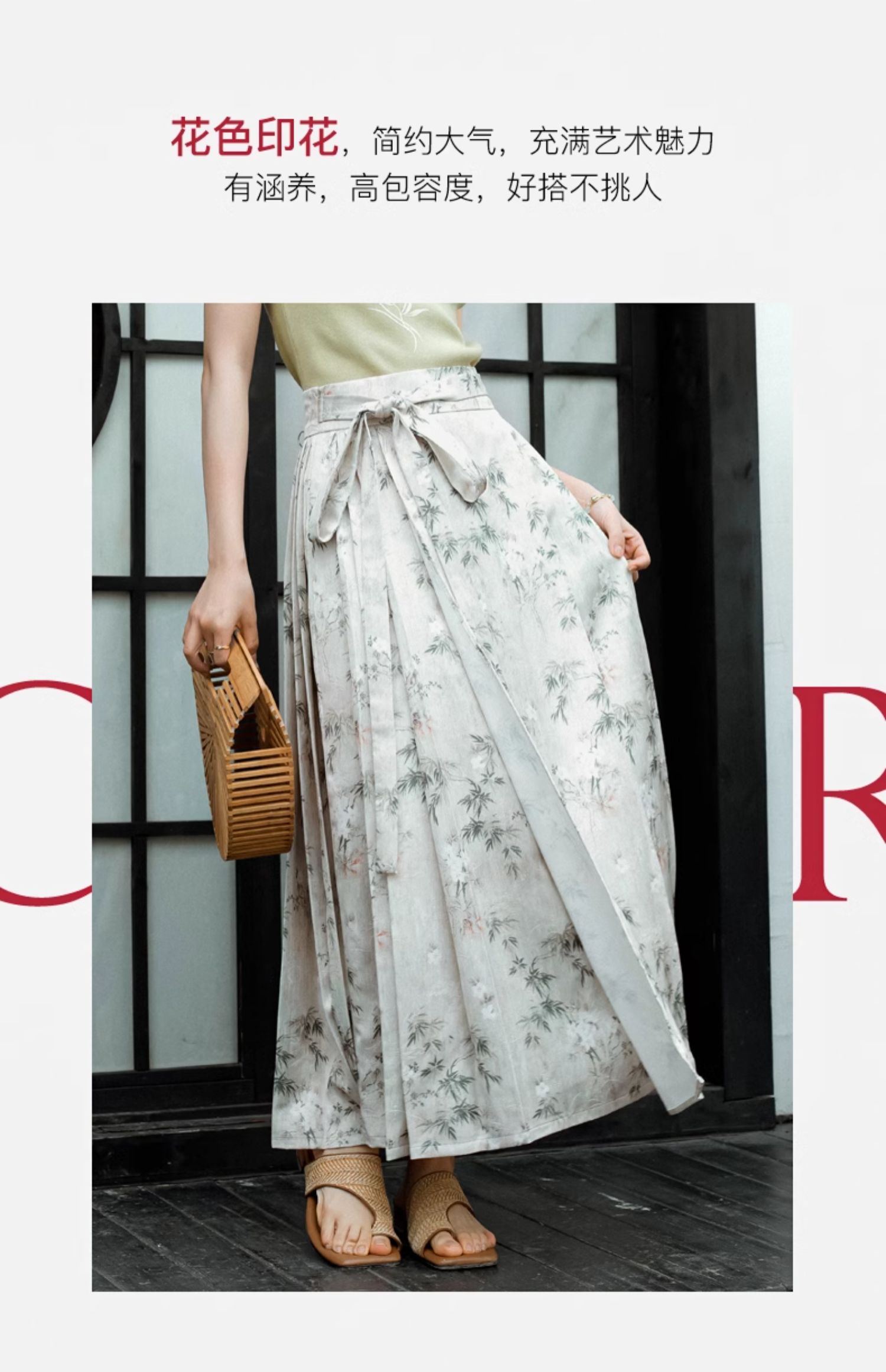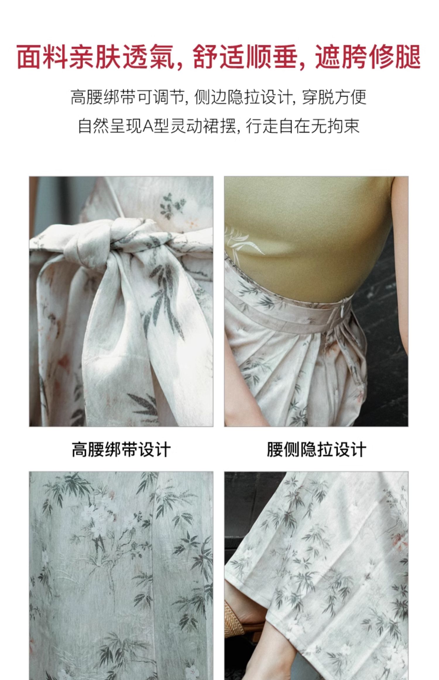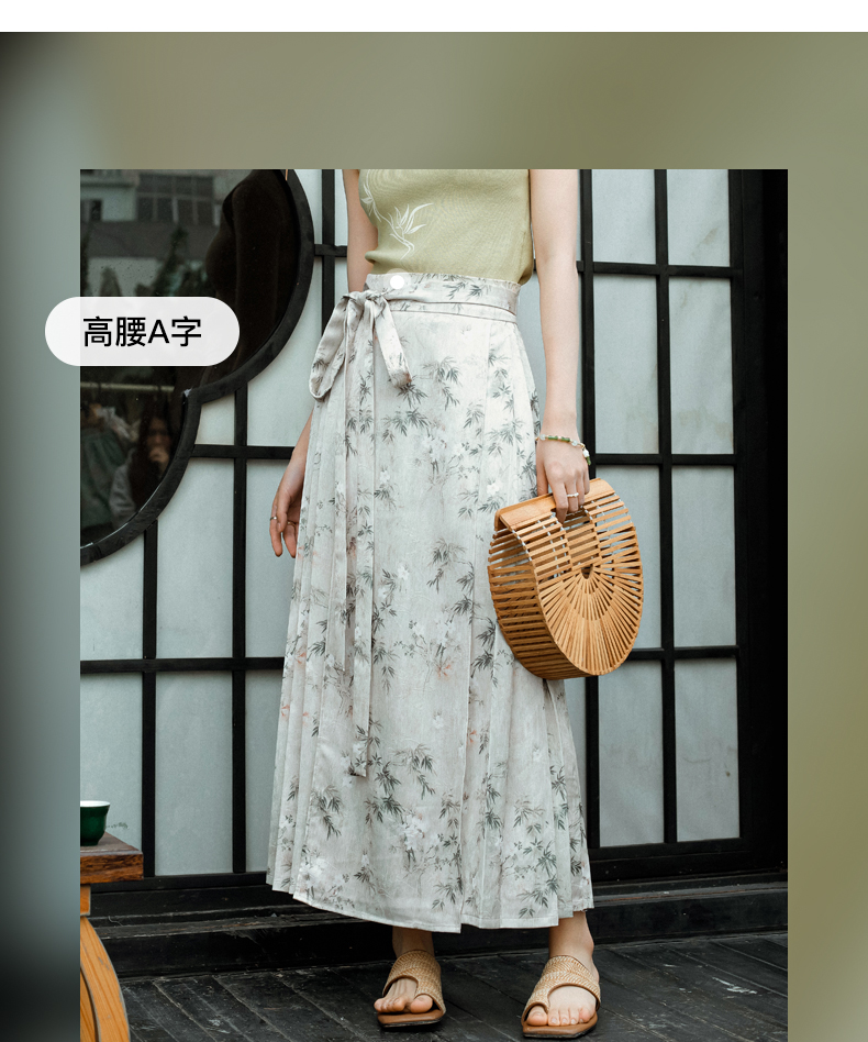 OLrain欧芮儿新中式花色半身裙女春季2024新款国风设计感高腰半裙