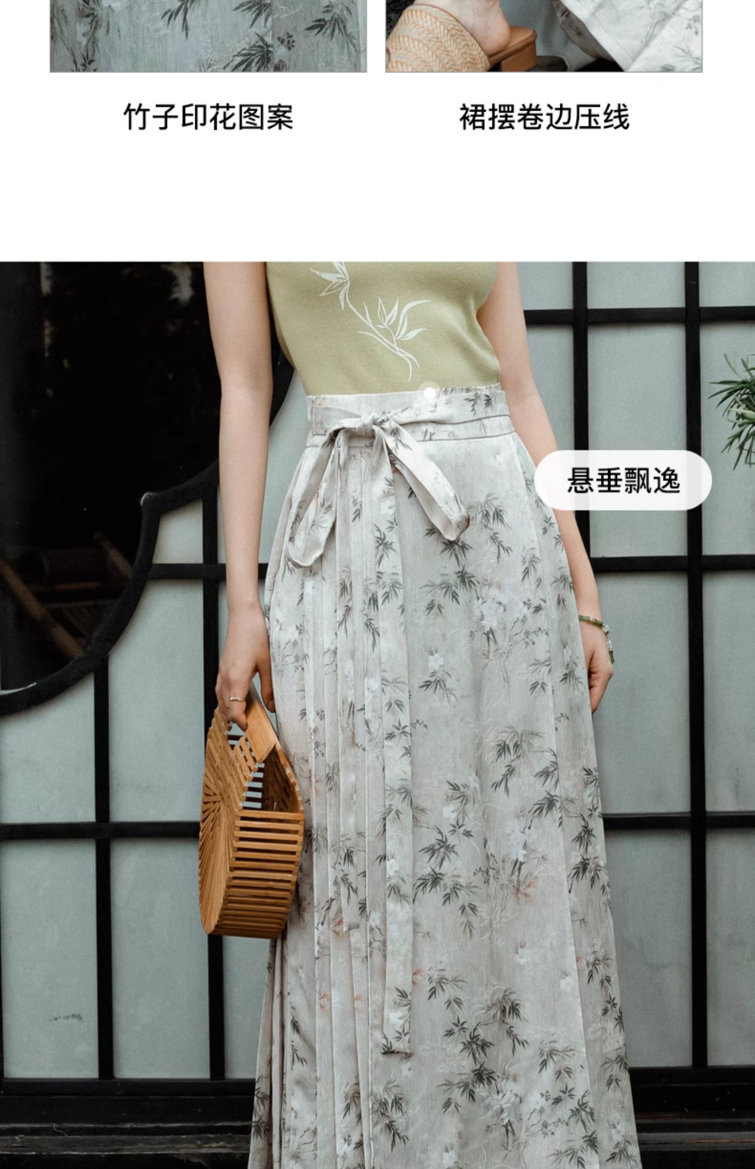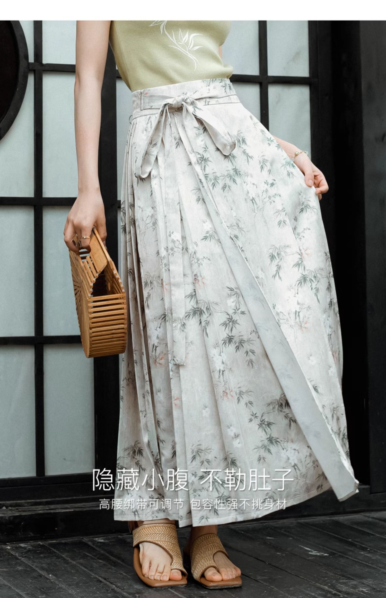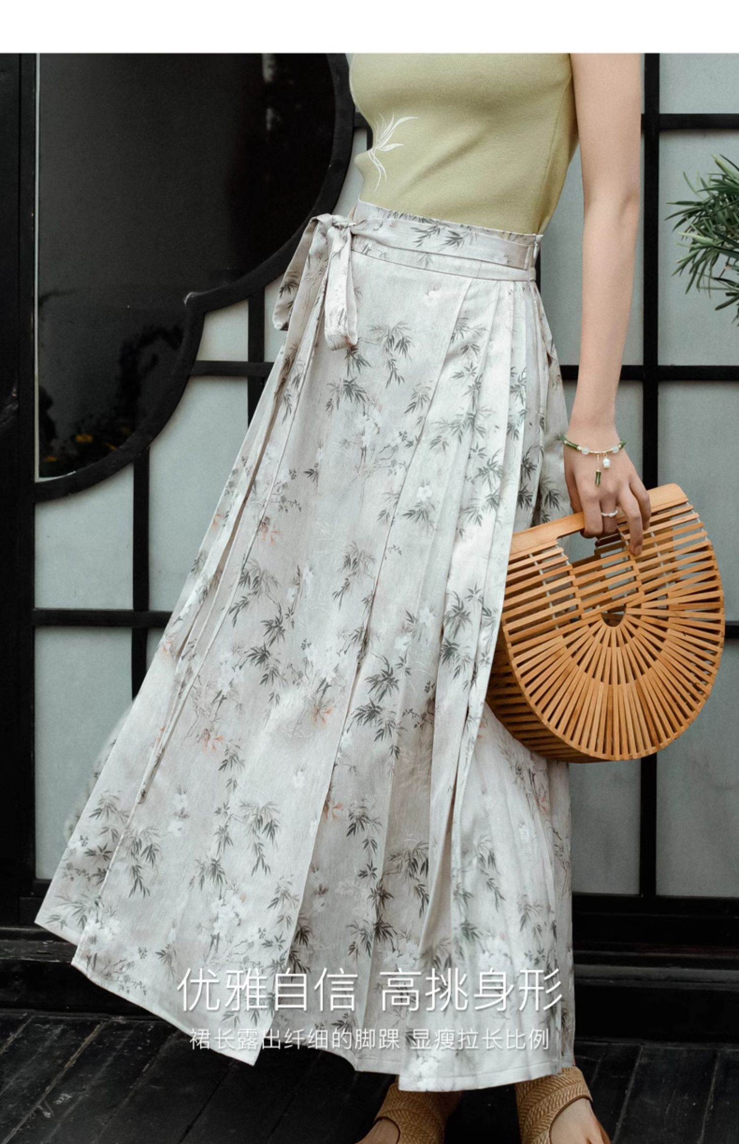 OLrain欧芮儿新中式花色半身裙女春季2024新款国风设计感高腰半裙