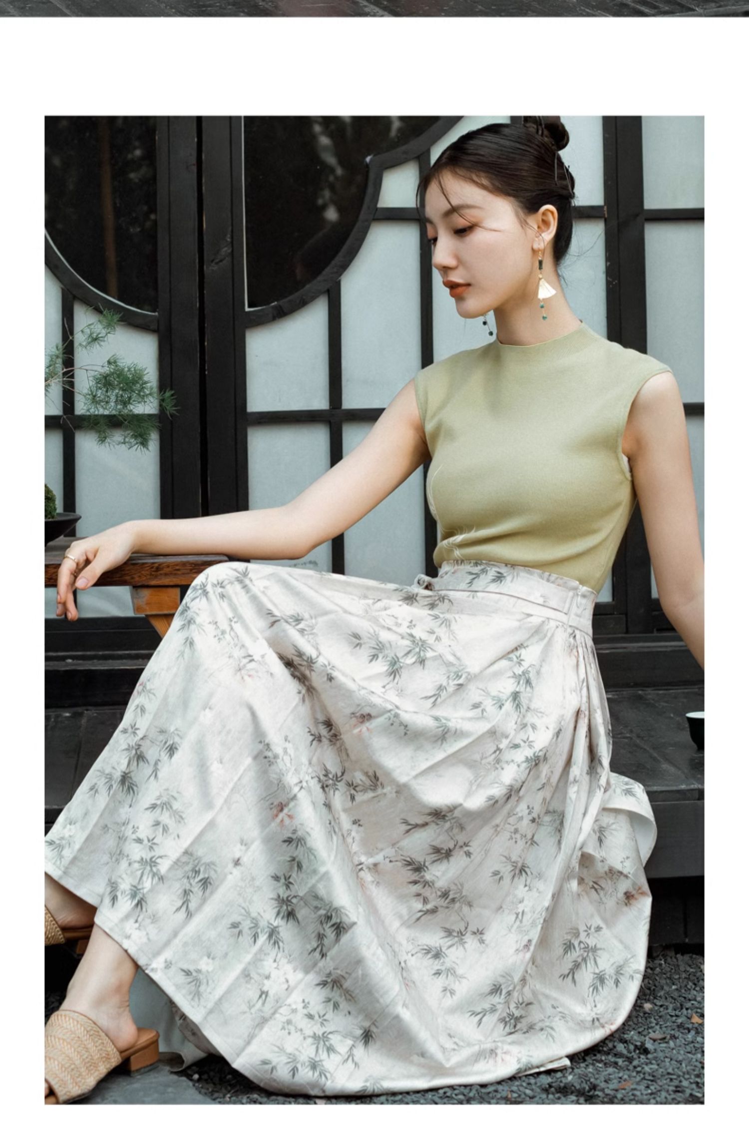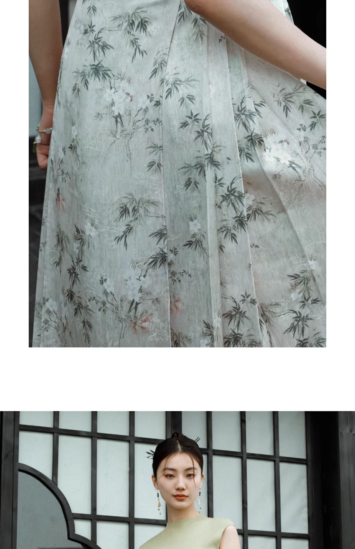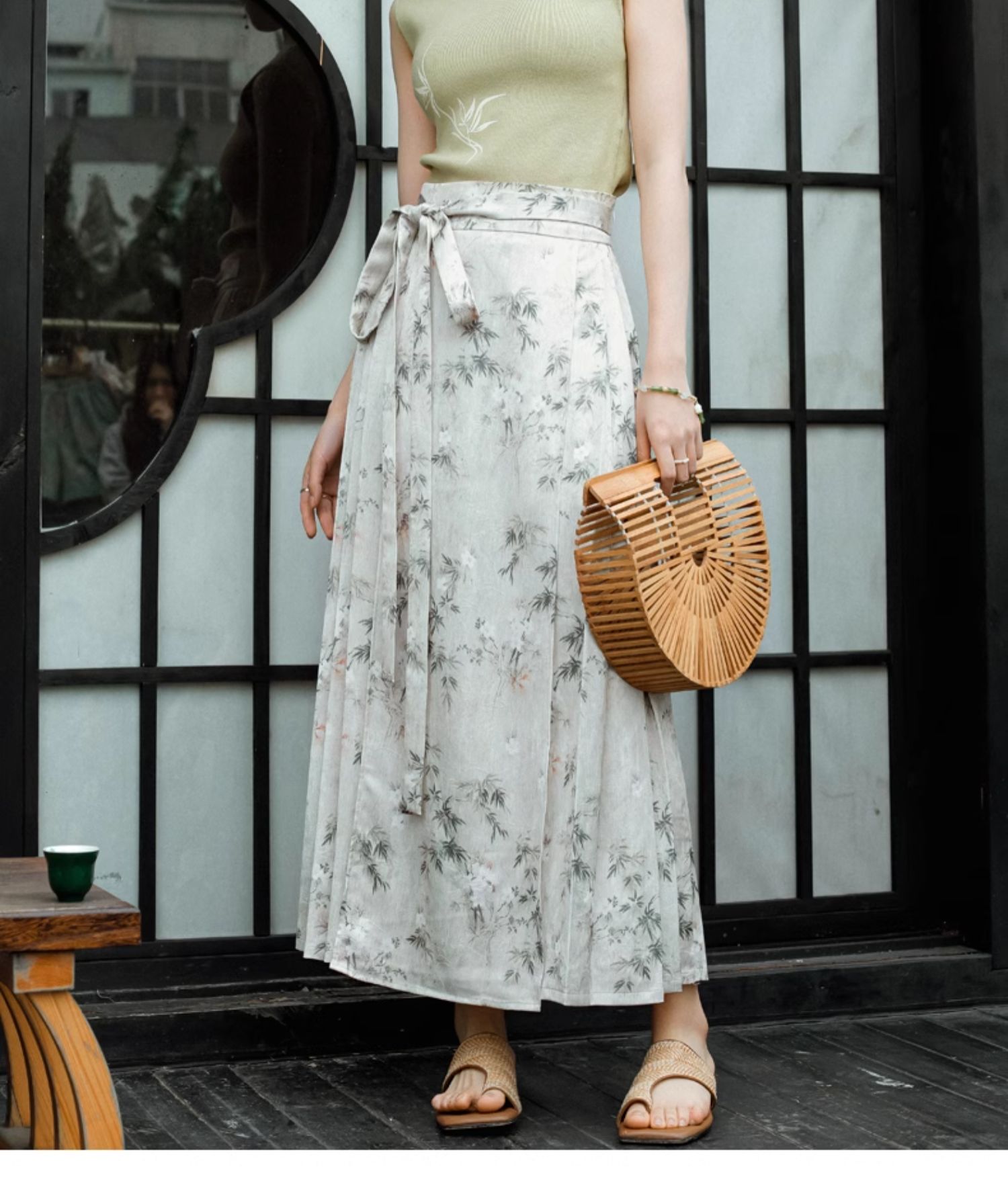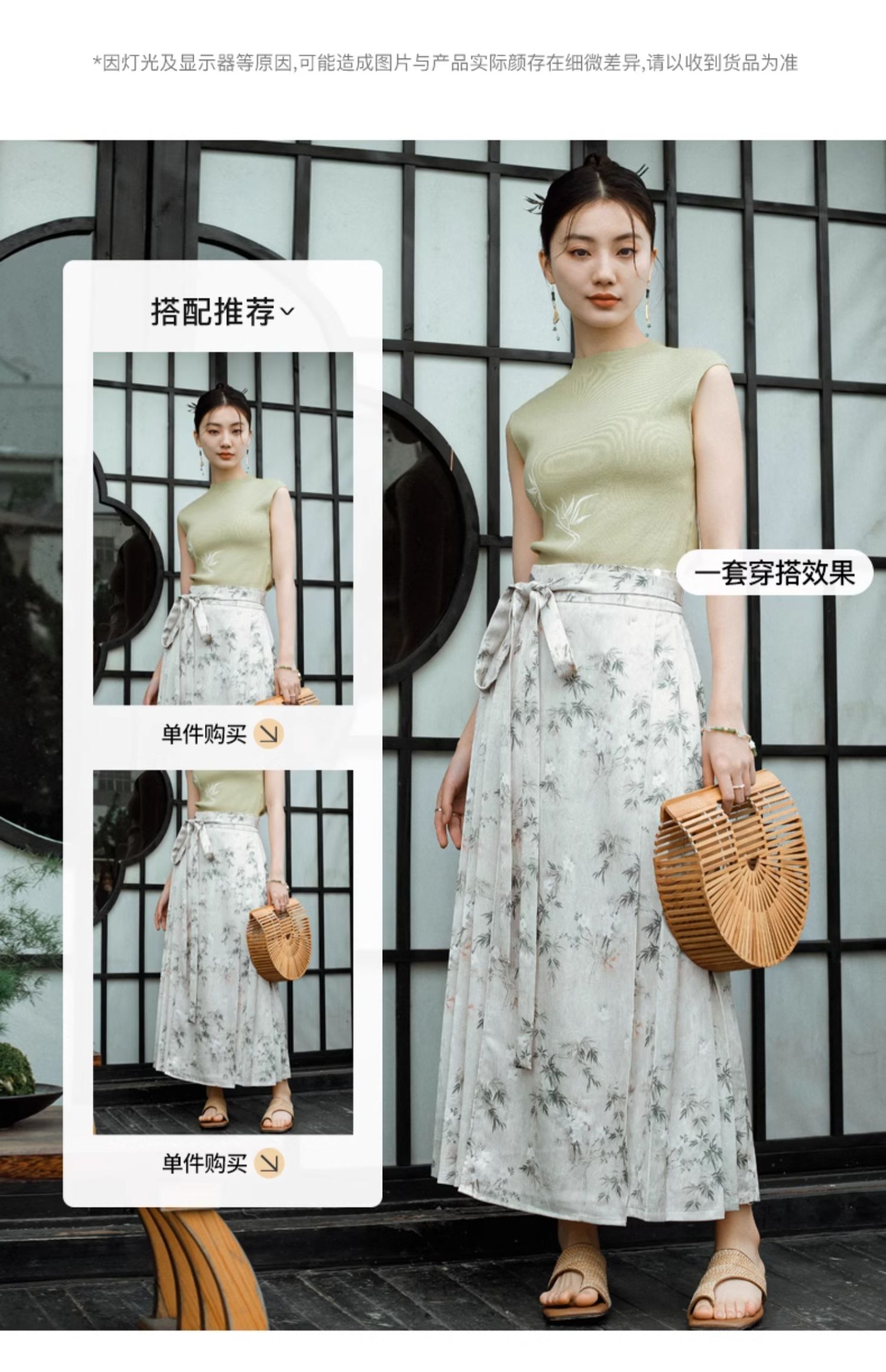 OLrain欧芮儿新中式花色半身裙女春季2024新款国风设计感高腰半裙
