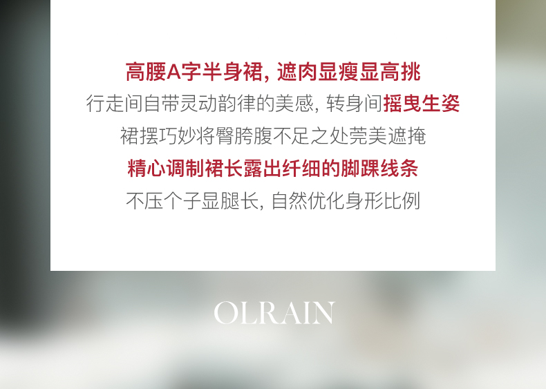 - “精致”是欧芮儿olrain品牌文化的核心,欧芮儿认为,精致的女人,不但要外在动人,更要内在迷人,内外兼修,有魅力、有气质、有内涵,自信而不自傲,优雅而不矫揉,自有万种风情而不轻浮,更不故作矜持。