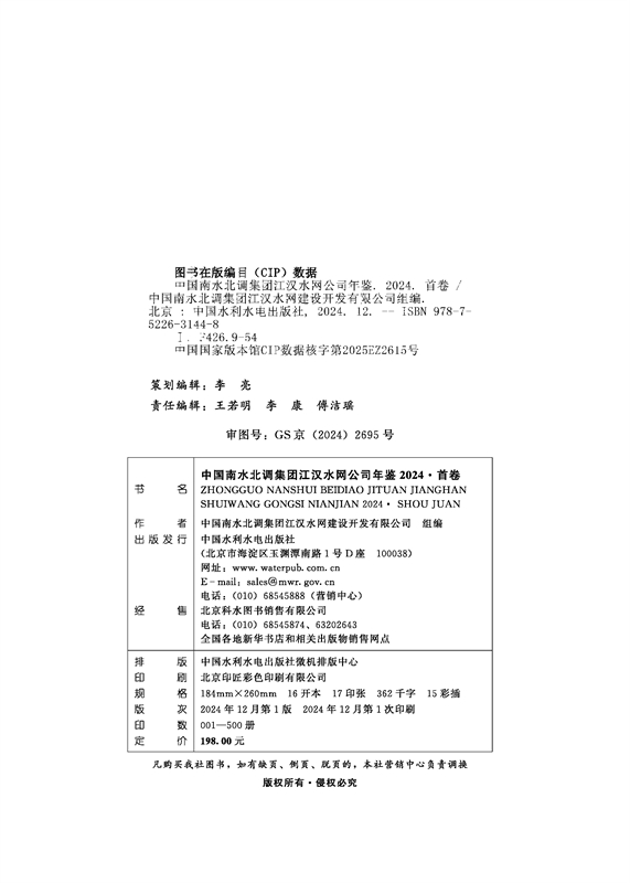 "引江补汉工程是南水北调后续工程首个开工项目,是全面推进南水北调后续工程高质量发展、加快构建国家水网主骨架和大动脉的重要标志性工程。《中国南水北调集团江汉水网公司年鉴》(以下简称《年鉴》)创办于2024年,旨在逐年连续记载中国南水北调集团江汉水网建设开发有限公司(以下简称“江汉水网公司”)基本情况以及在引江补汉工程前期规划、工程建设等工作开展过程中的重要事件、重大进展、重要成果等内容资料。