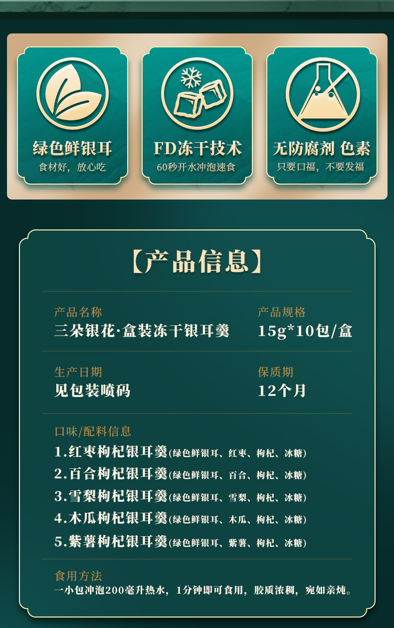 【会员专享】【年货好礼】三朵银花 新春好礼冻干银耳羹五种口味混搭大礼盒