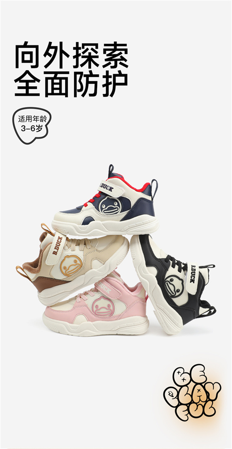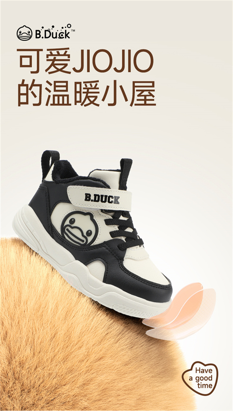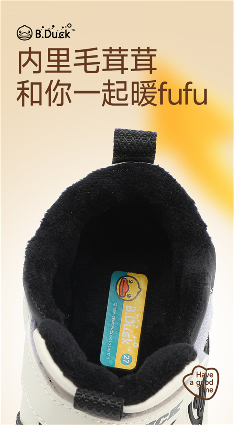 B.Duck小黄鸭童鞋冬季男女童高帮板鞋加绒保闲鞋24-30 B5586913