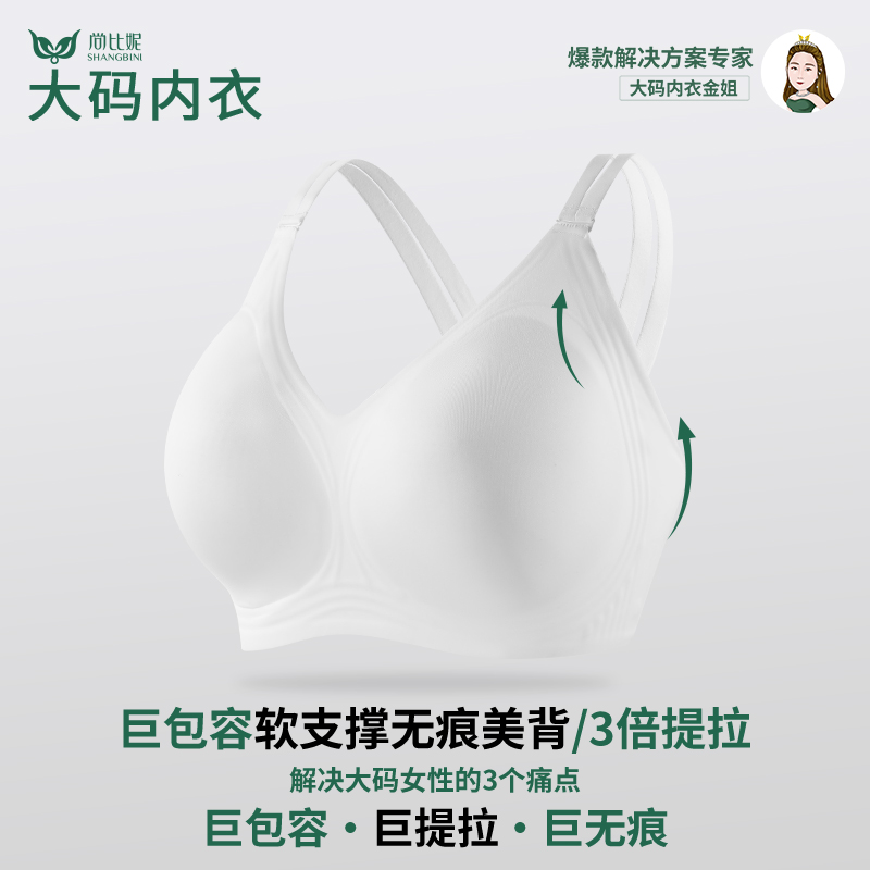 【大码内衣,卡码拍小】尚比妮 大码内衣巨包容3倍提拉收副软支撑无痕美背内衣立体光面轻盈 2531