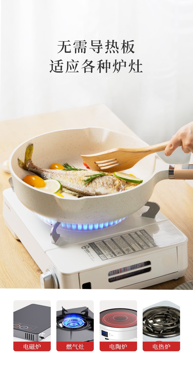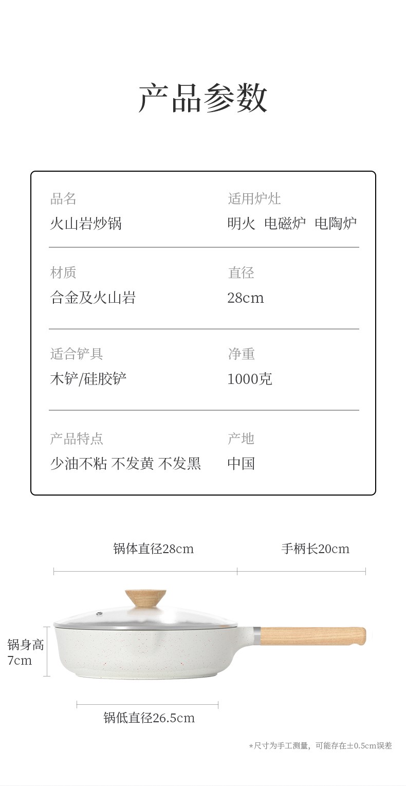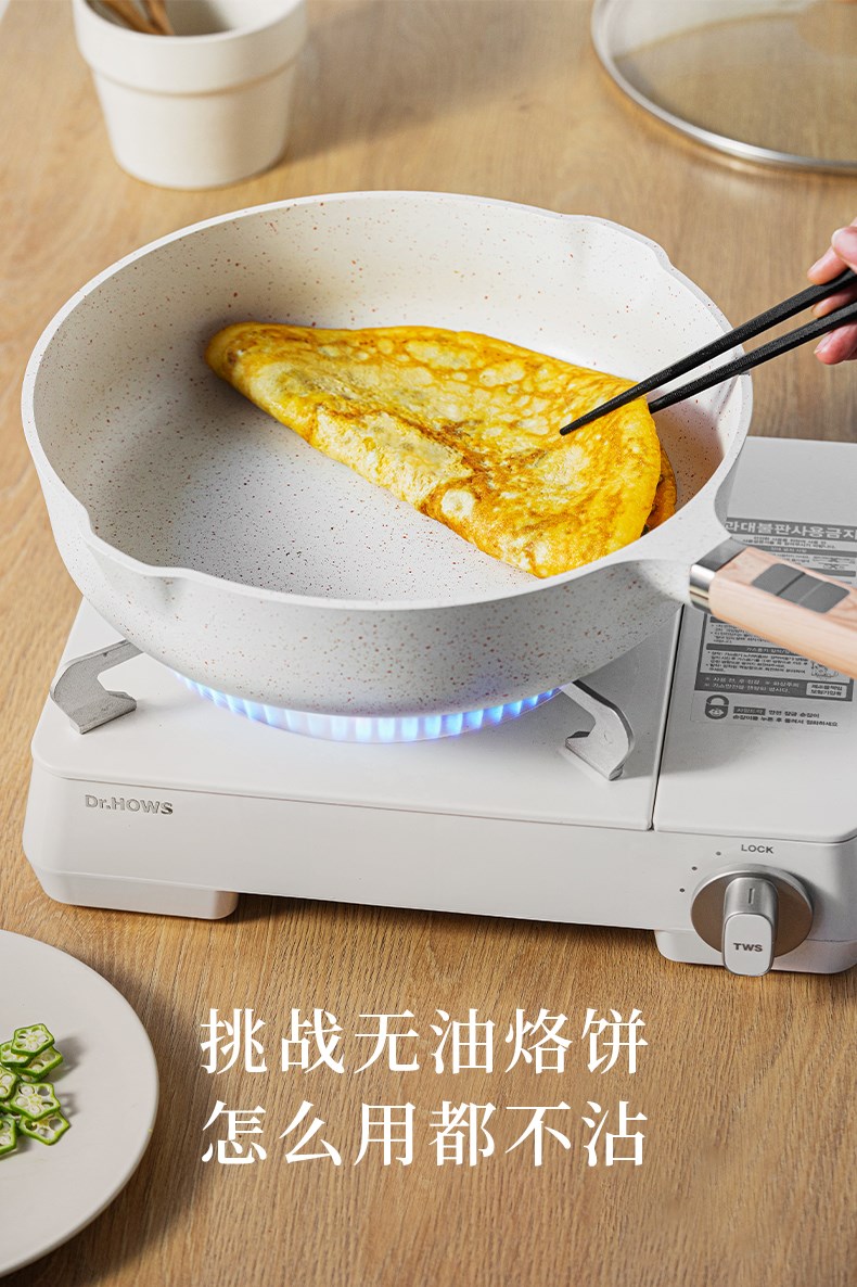 【持久不沾】火山岩小白锅 送:锅盖+榉木铲+5 分食筷+海绵擦3个 家用煎炒多功能 高颜值不粘锅 素味 包邮