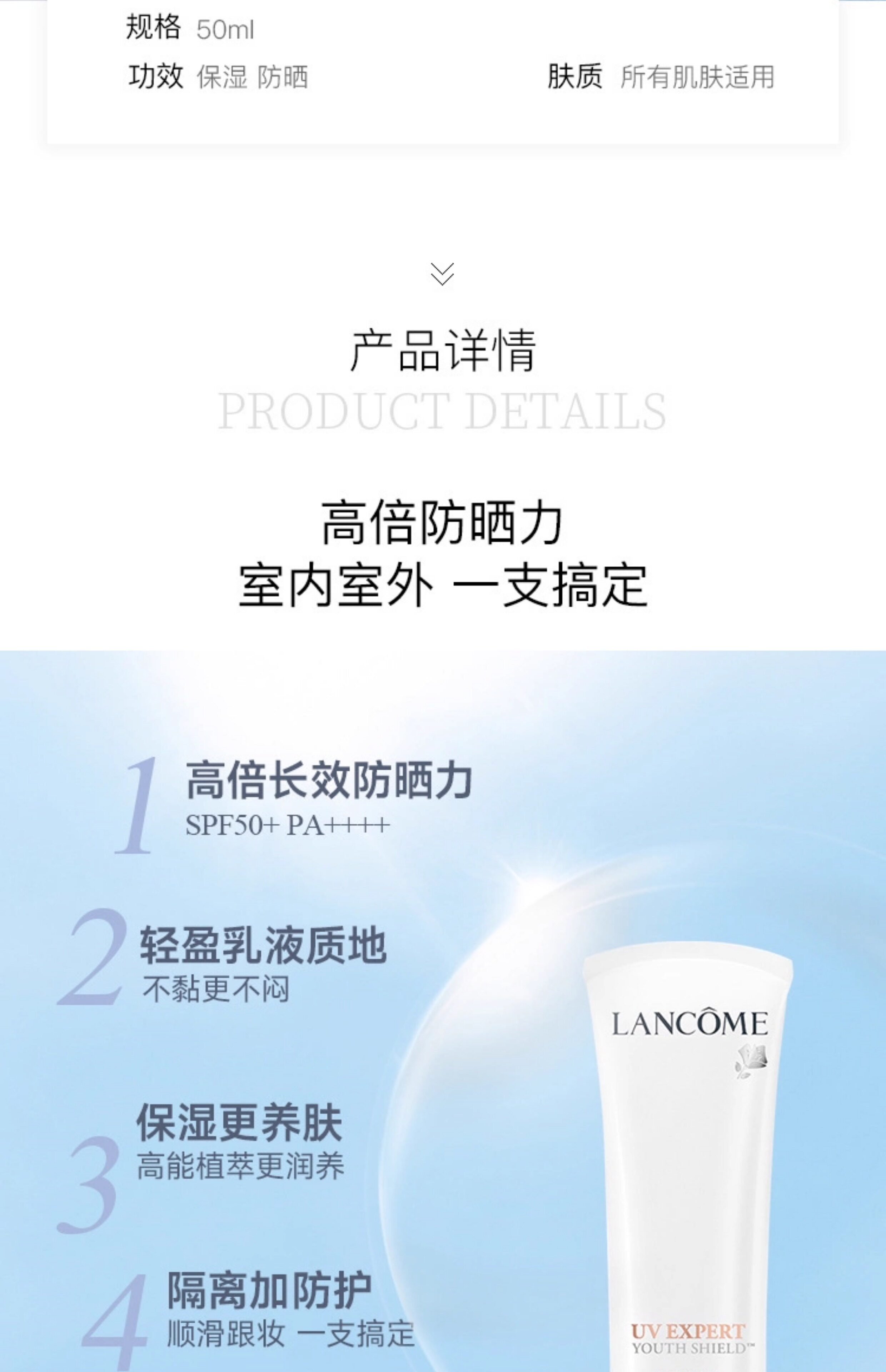 【保税仓】兰蔻小白管防晒乳清爽版50ml (效期:2026-12)
