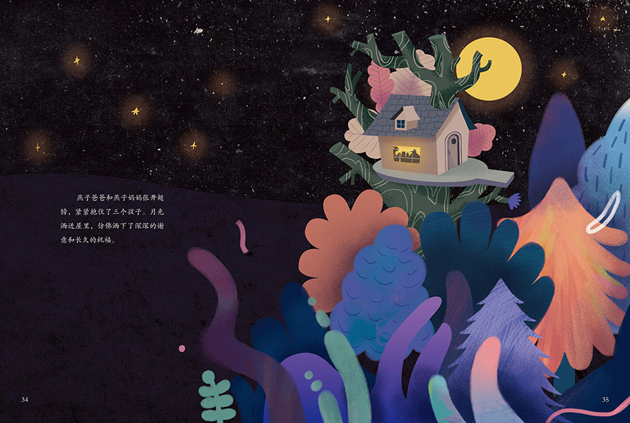《家》:这是一个鼓励自由探索、培养同理心的故事。在爸爸妈妈的鼓励下,三只小燕子分别去了不同的地方寻找新家,弟弟想搬到环境优美的大花园里,让全家人共享欢声笑语;哥哥想搬到失去父亲的小男孩家里,为他带去笑容;妹妹想搬到孤独的老爷爷家里,陪伴他温暖他。后他们会选择搬去哪里呢?