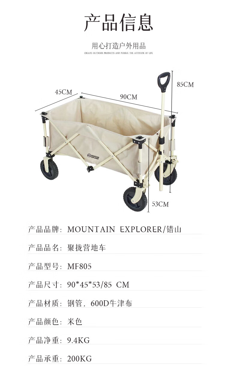 错山MOUNTAIN EXPLORER 户外精致露营推车可折叠户外野餐车营地拖车营地车MF805