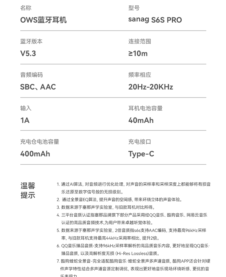 塞那 耳夹式蓝牙耳机 暮光紫/对 S6S Pro-S