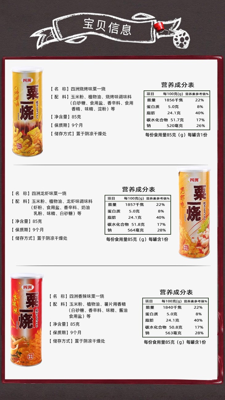 四洲烧烤味筒装粟一烧85g