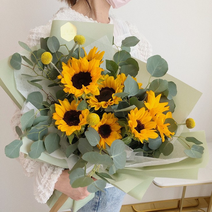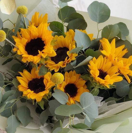 向日葵、心形尤加利叶 黄金球