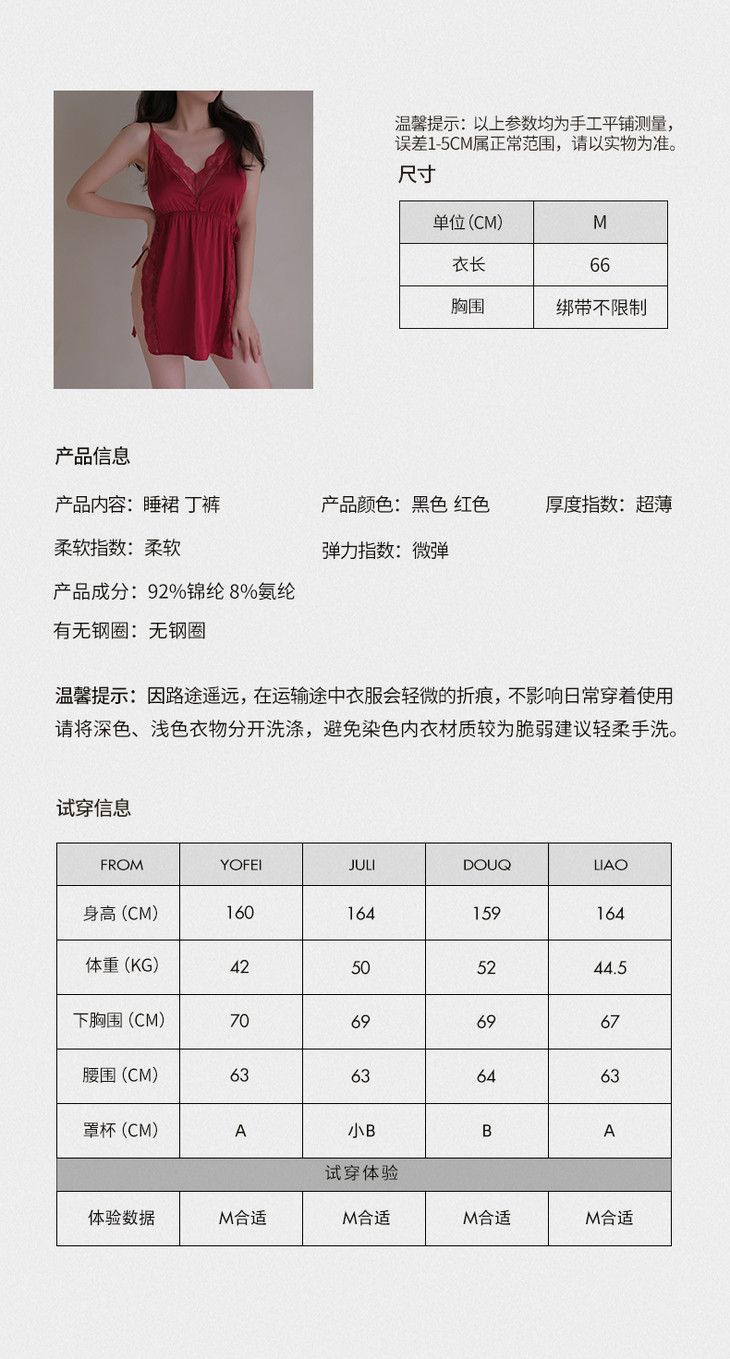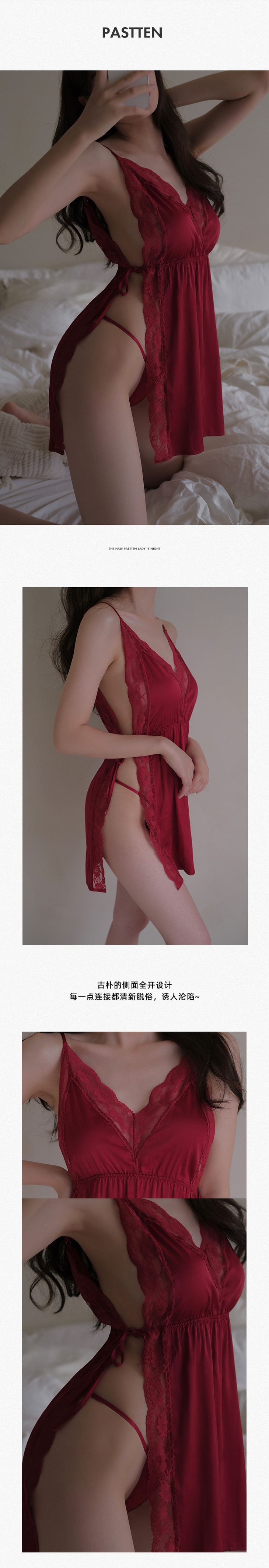 MBK定制 | 小甜心侧开绑带睡裙深V吊带睡衣情趣