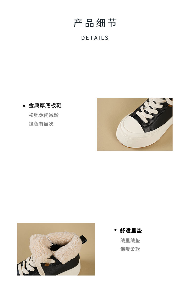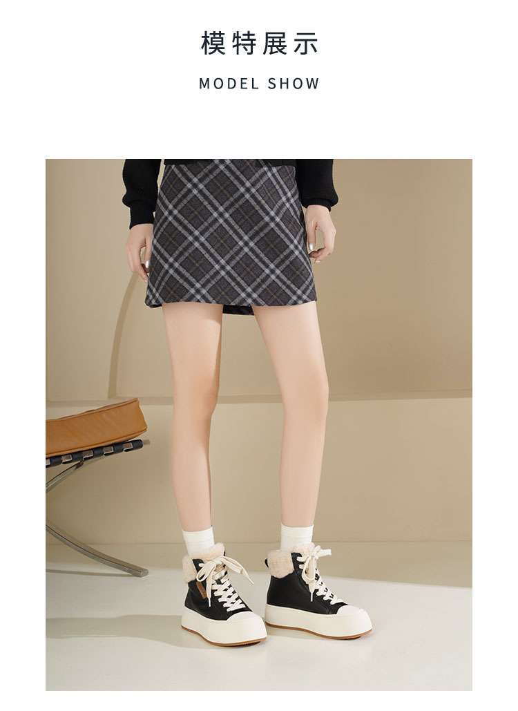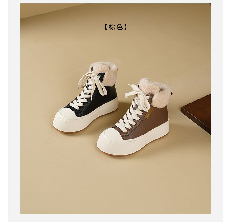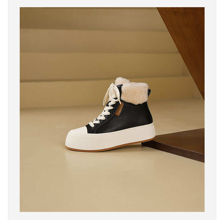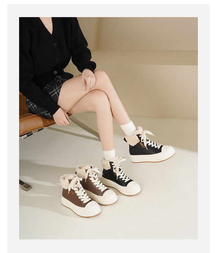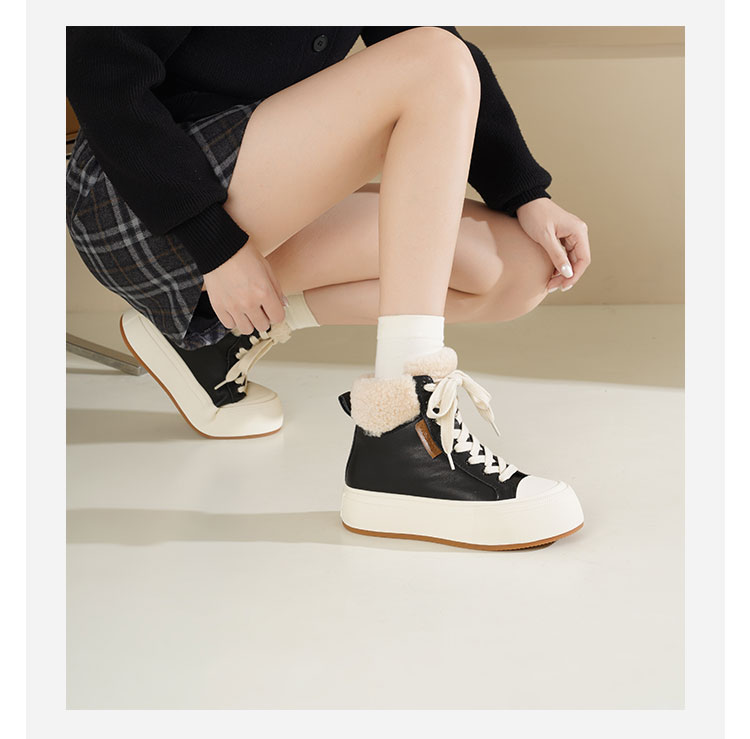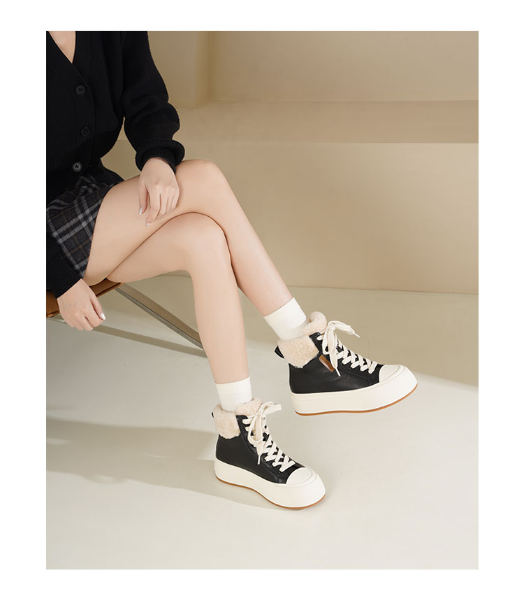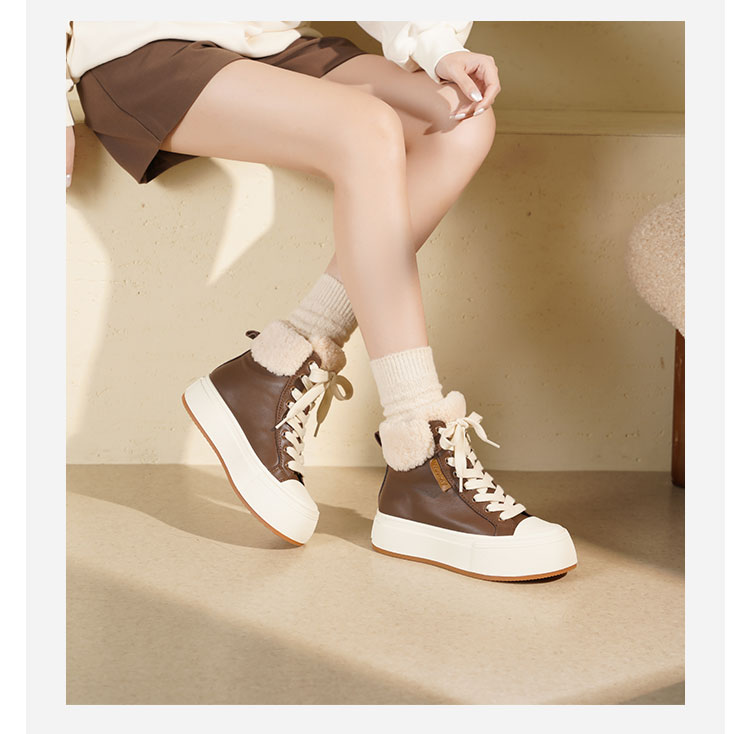 Westory2025年冬季牛皮加毛高帮板鞋休闲运动系带毛短靴S25DM85971
