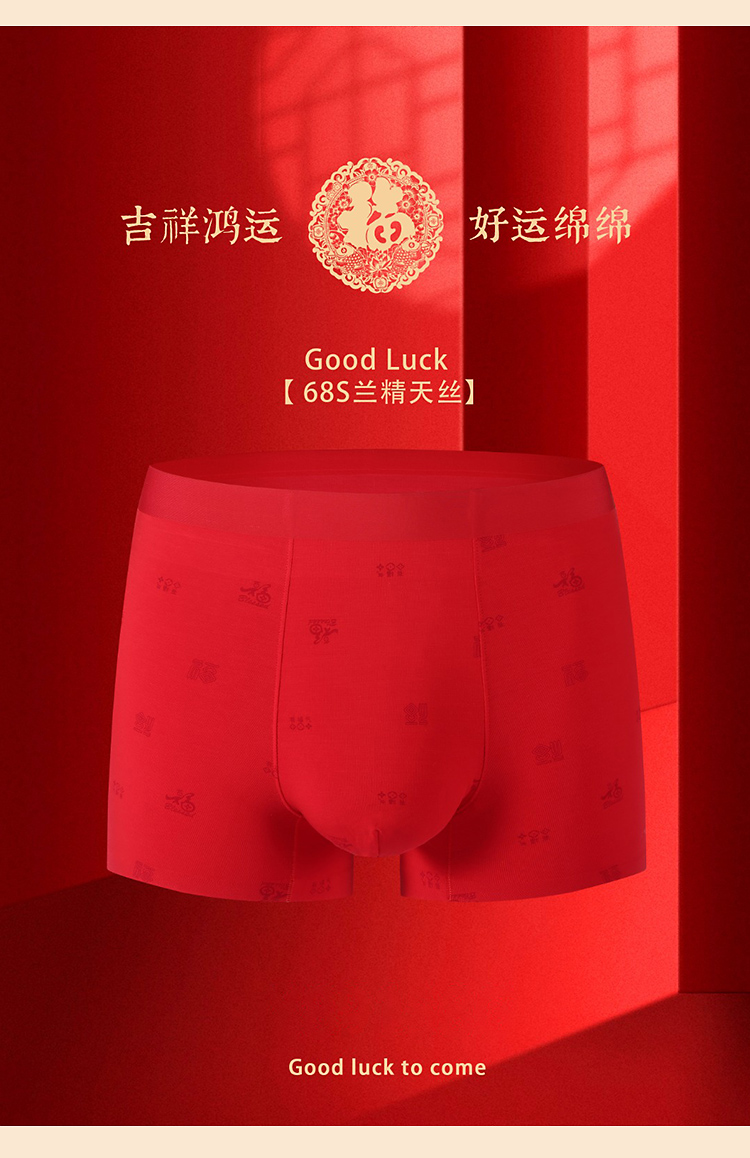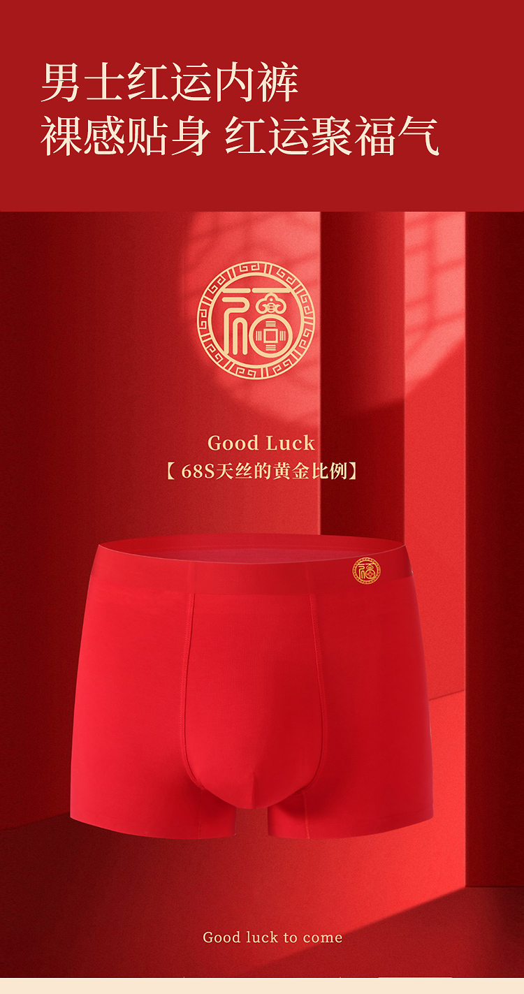 皇家丽美男士红运内裤 68S 天丝桑蚕丝里裆 裸感贴合弹力宽腰红运聚福气平角裤DKN1263&DKN1265