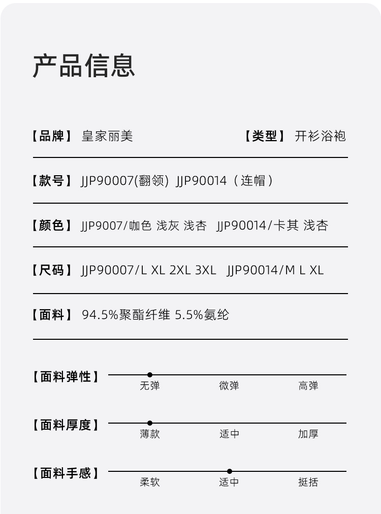 皇家丽美男女款双面摇粒绒睡袍 连帽 / 翻领款 宽松版型舒适家居服JJP90007&JJP90014