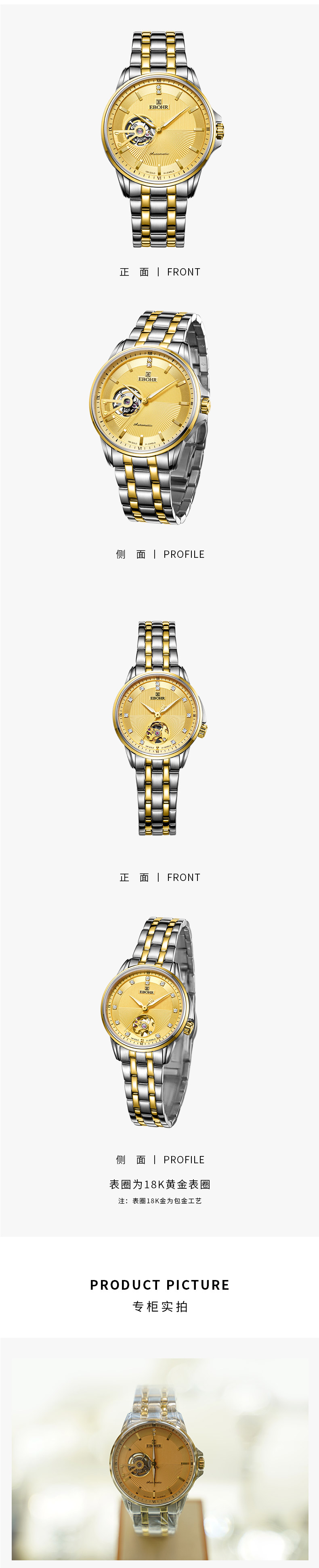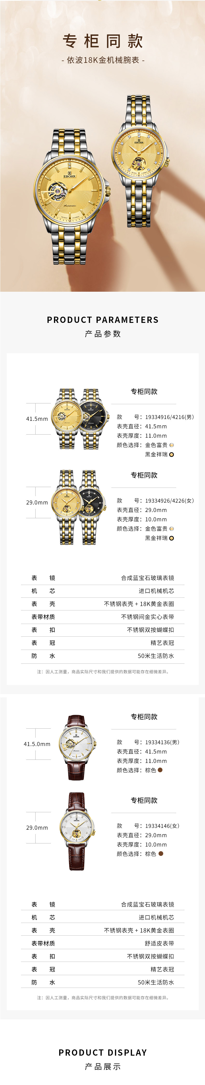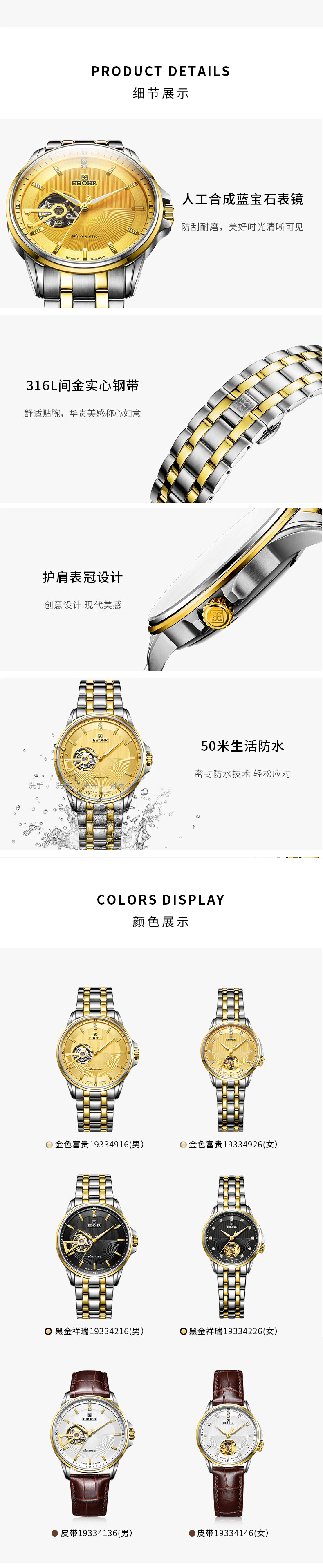 依波情侣手表19334146镂空钢带机械防水女表