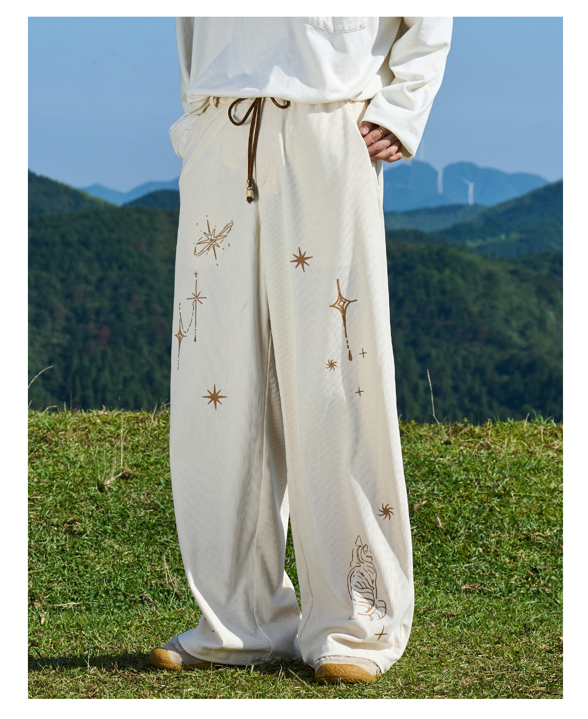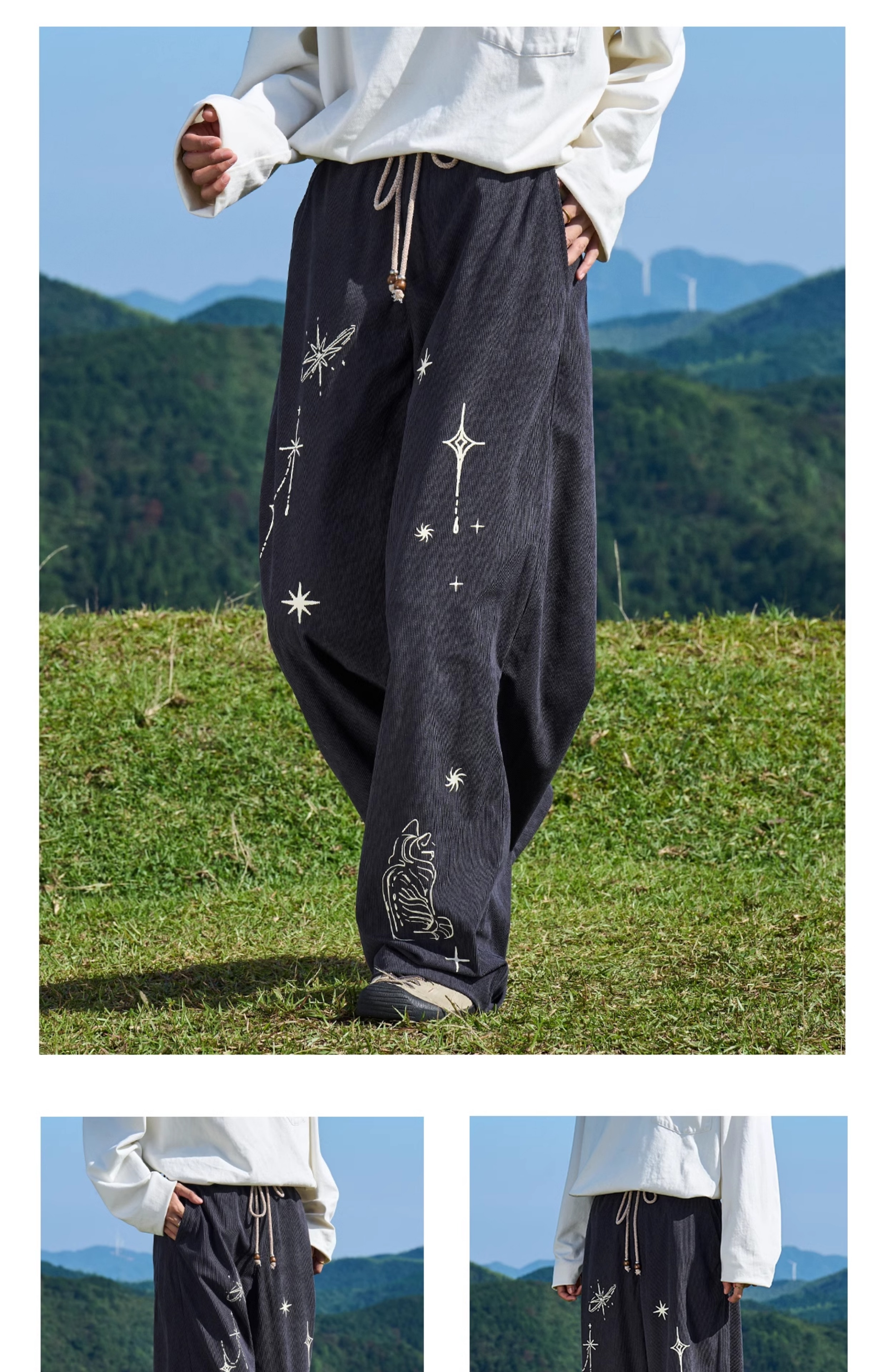马得工地/MDGDCK244325/星空小猫灯芯绒绣花长裤