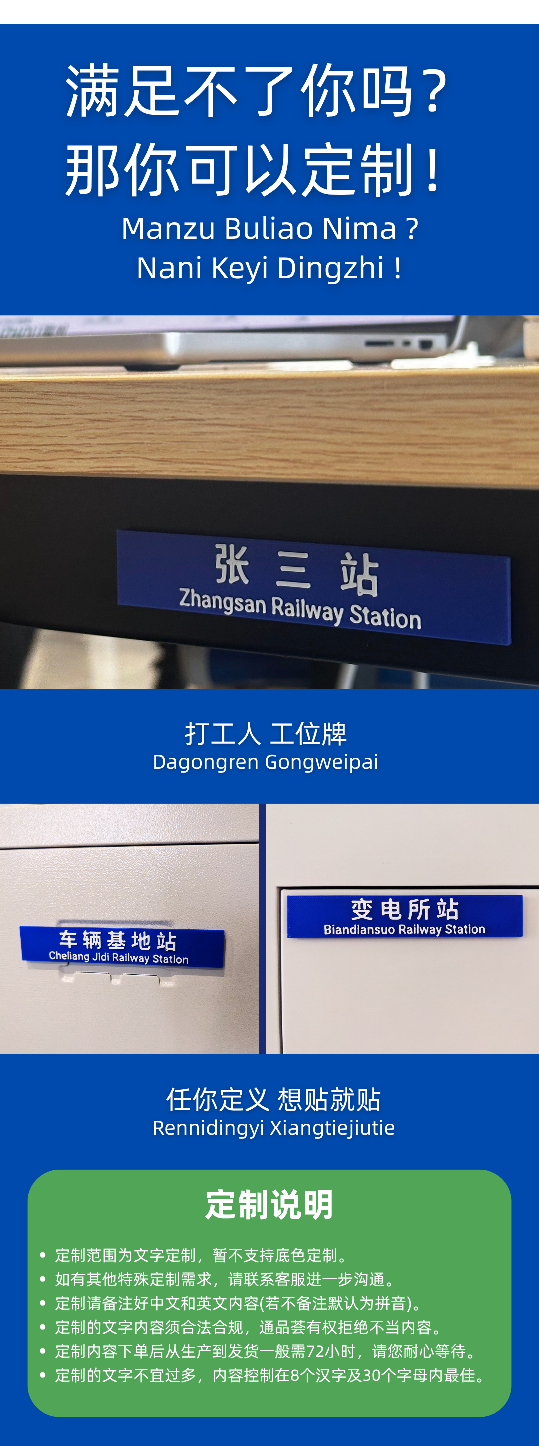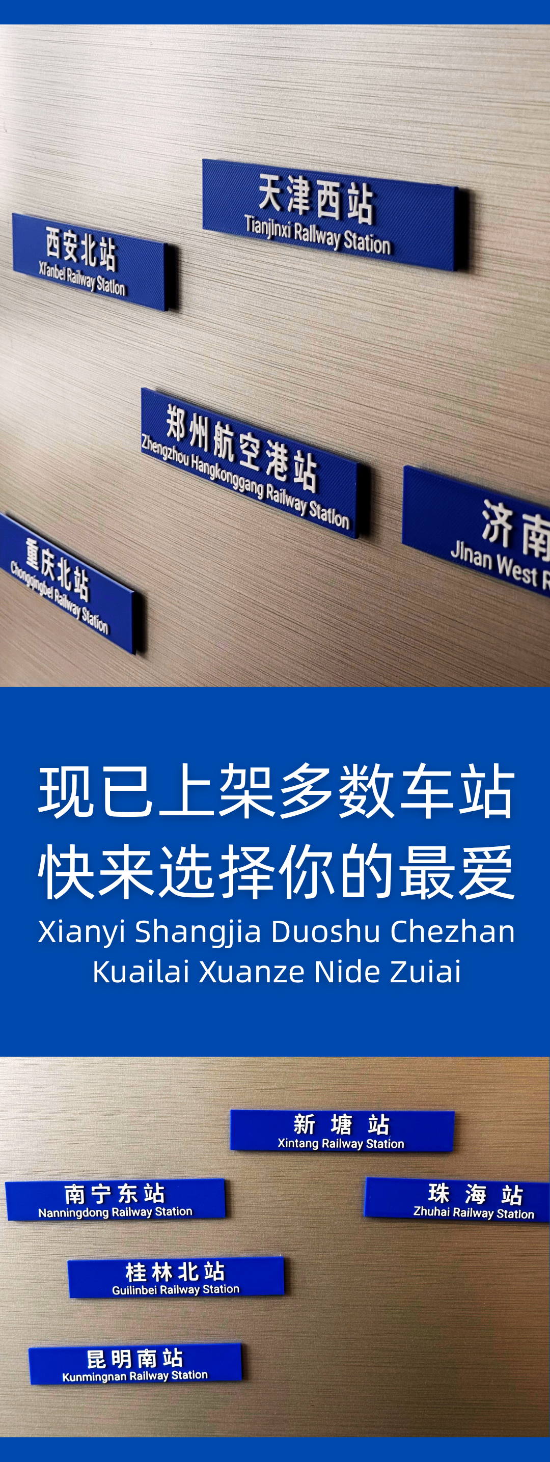 【通品荟·3D工坊】蓝底火车站名牌冰箱贴 可定制站名 凑单神器