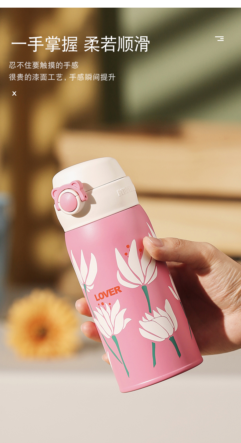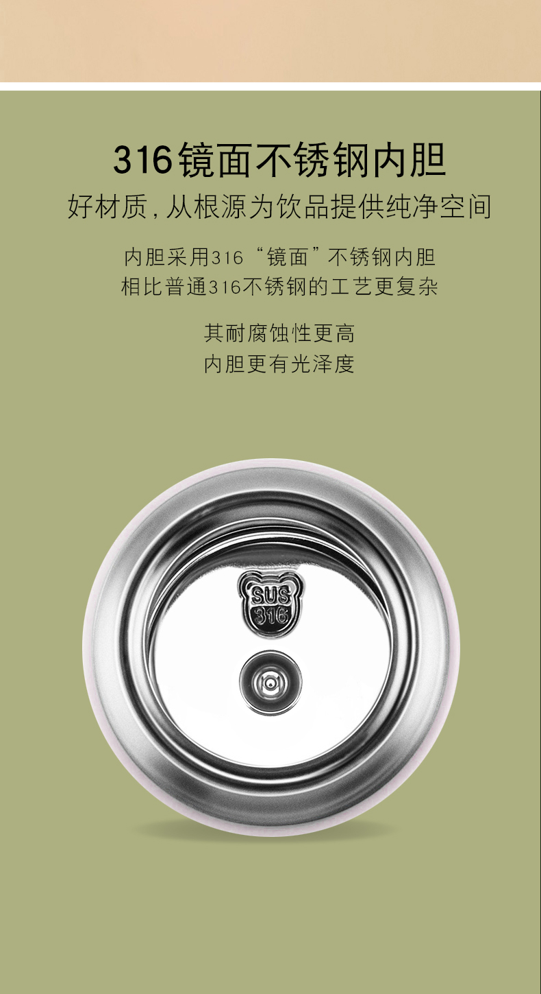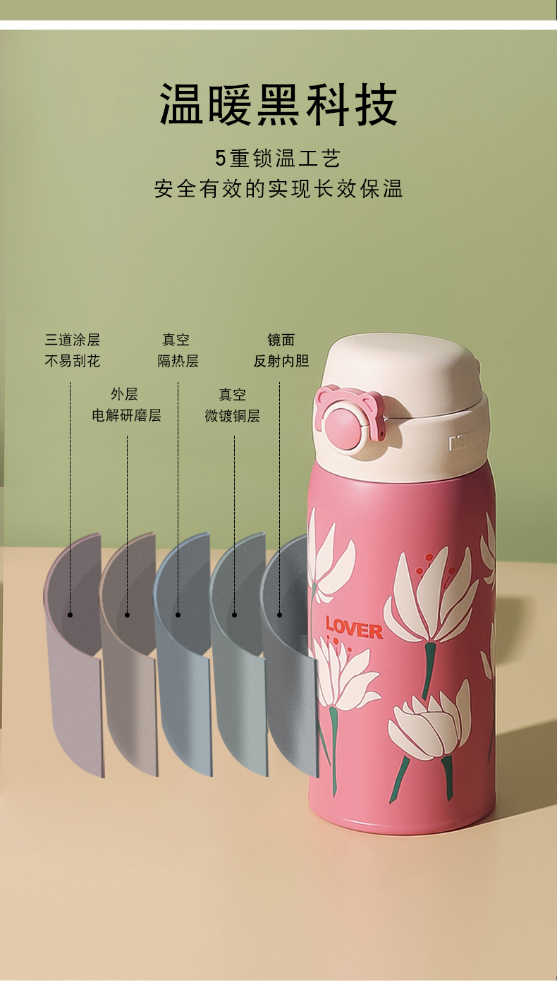 杯具熊成人水杯316不锈钢内胆保冷保温杯简约少女风随手杯直饮杯