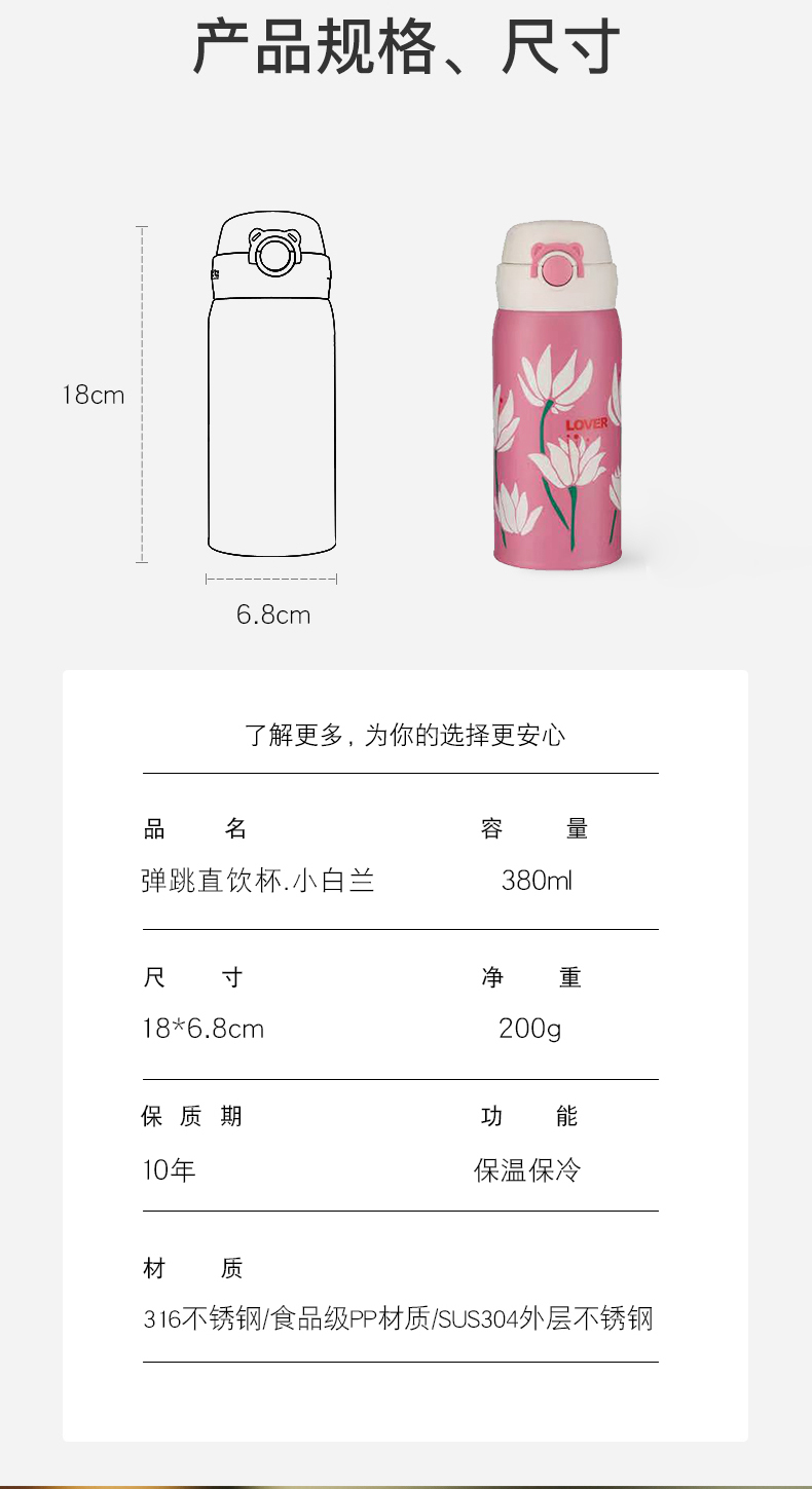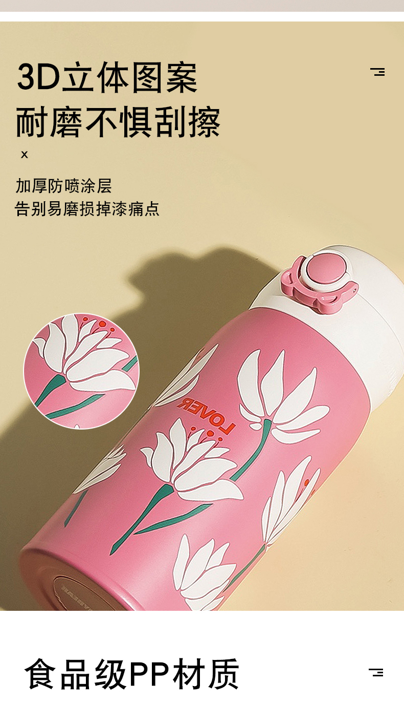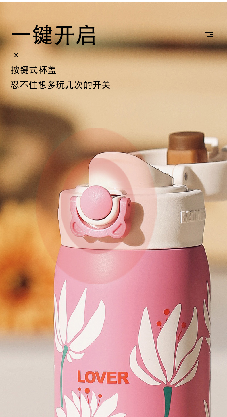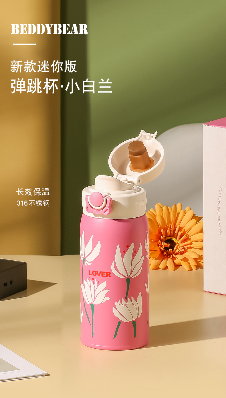 杯具熊成人水杯316不锈钢内胆保冷保温杯简约少女风随手杯直饮杯