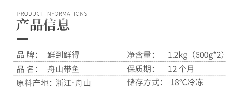 心选丨鲜到鲜得舟山带鱼1.2kg*2