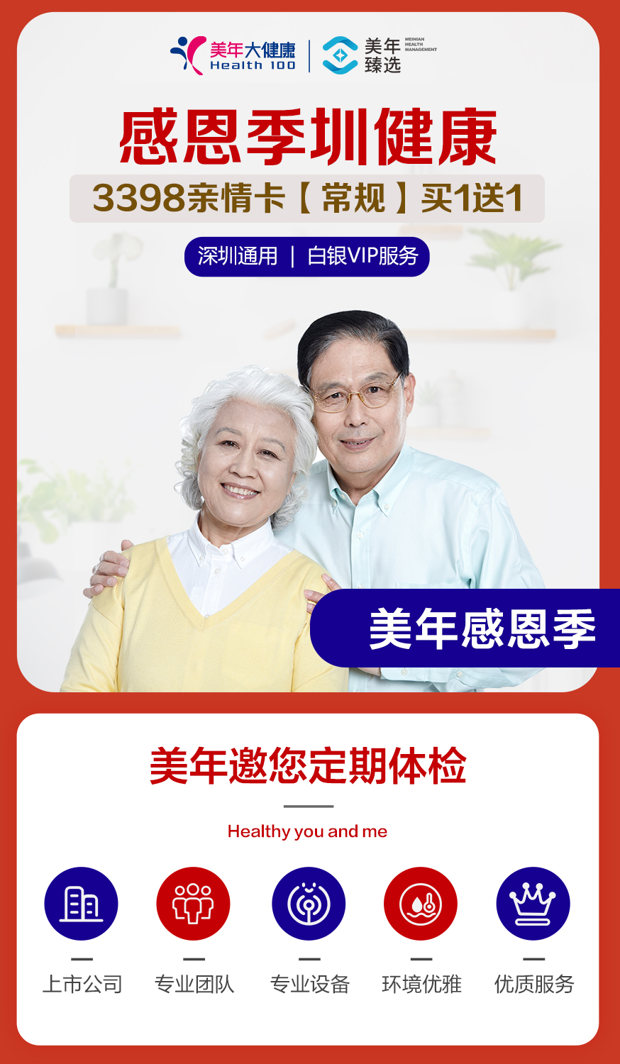 【美年大健康】感恩季 圳健康 3398亲情卡VIP(常规),买一送一(下单后找客服预约)