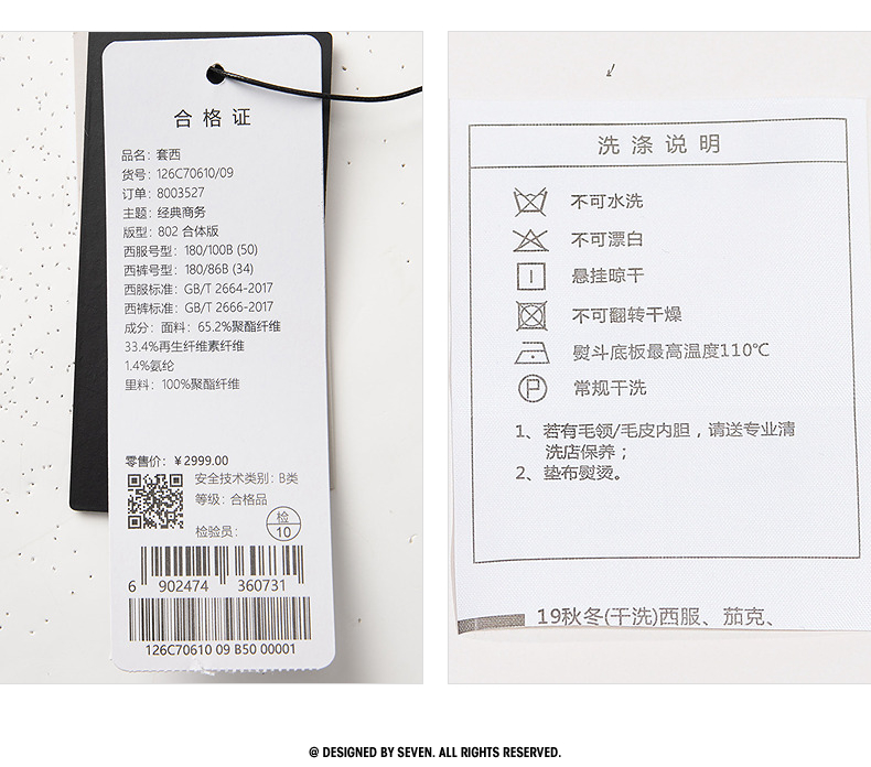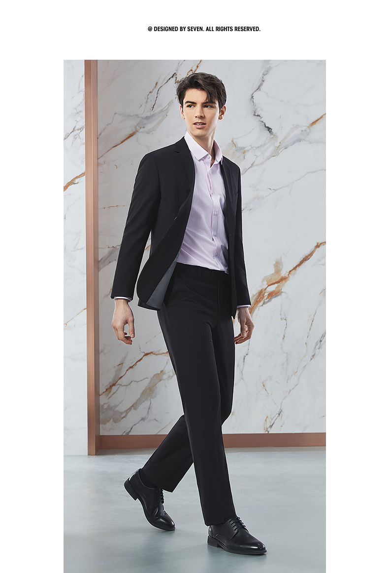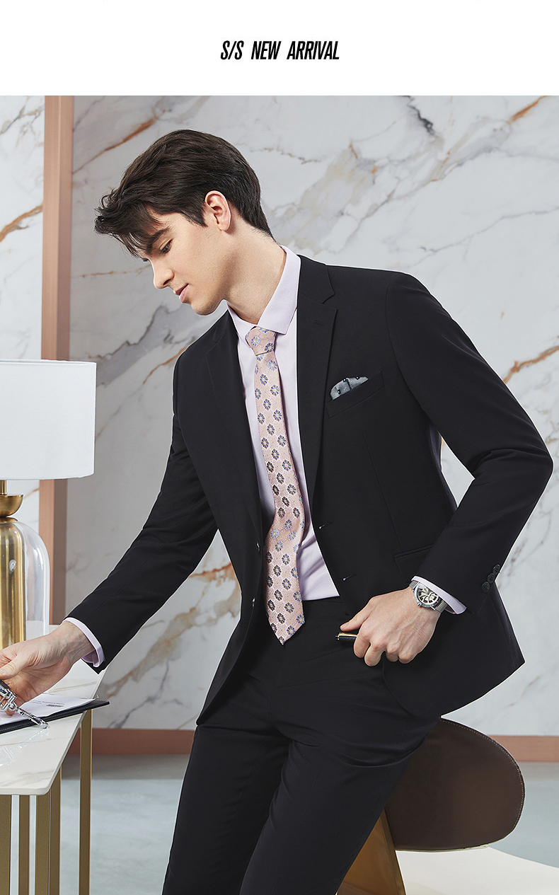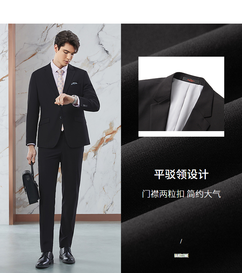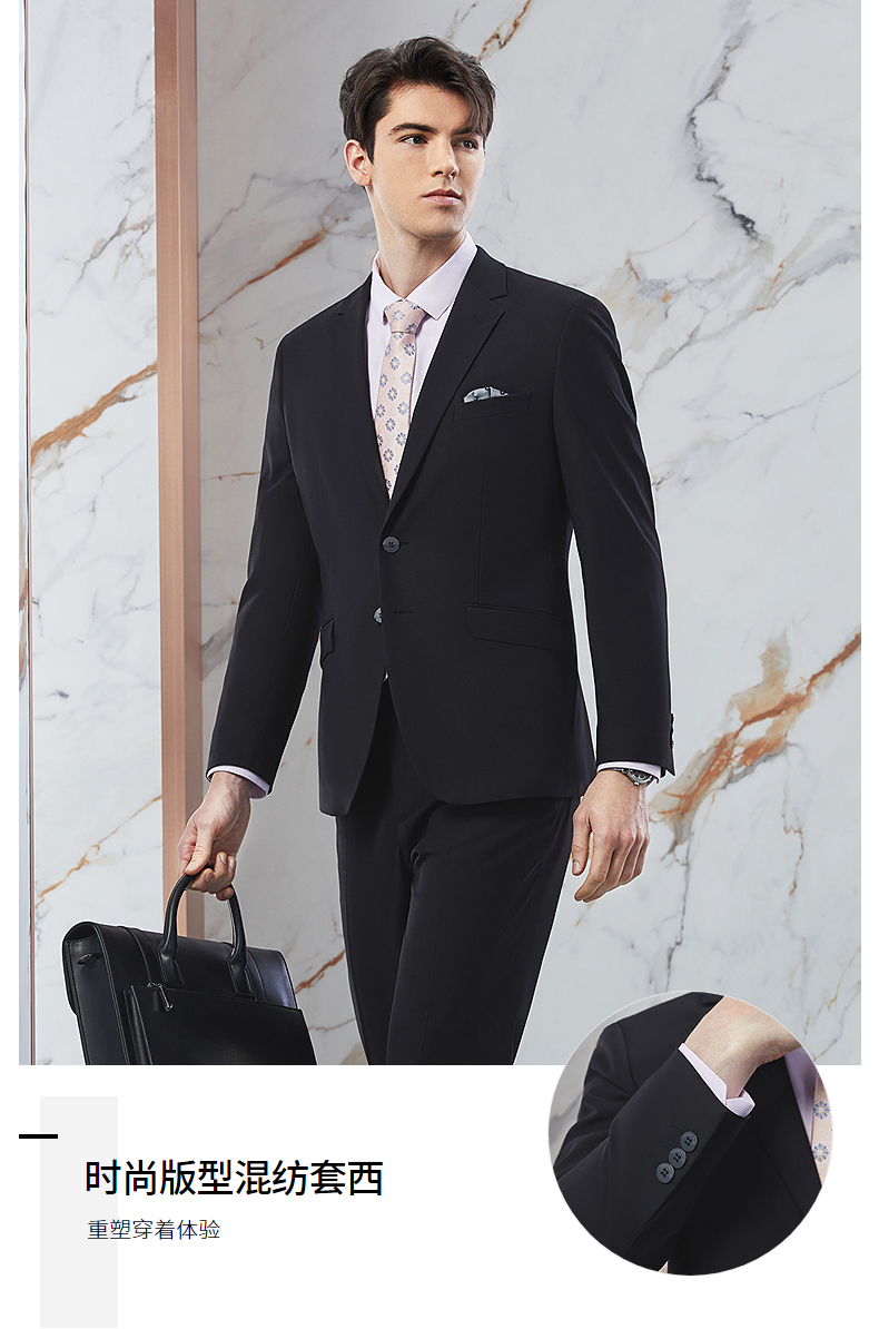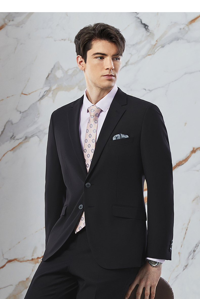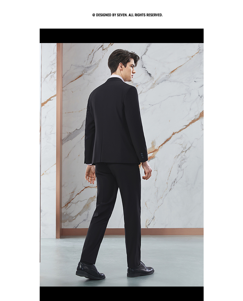 【含竹纤维】柒牌西服套装男2024春季新款商务正装黑色平驳领西装126C70610