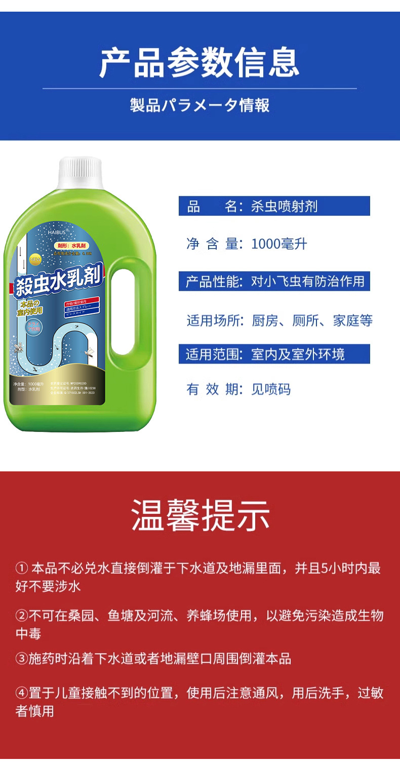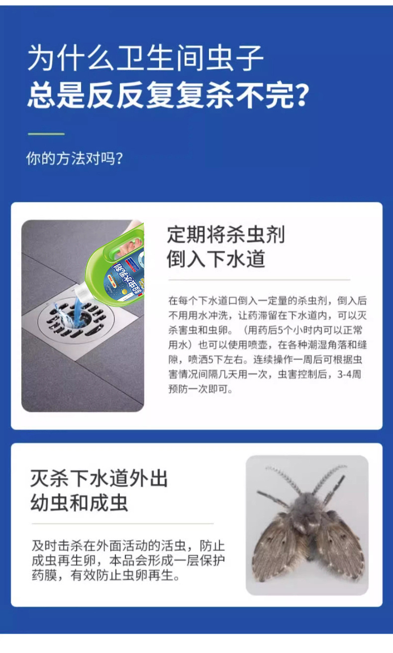 【厕所管道水乳剂】小飞虫灭杀下水道地漏杀虫水乳剂 除驱虫家用室内去除飞虫