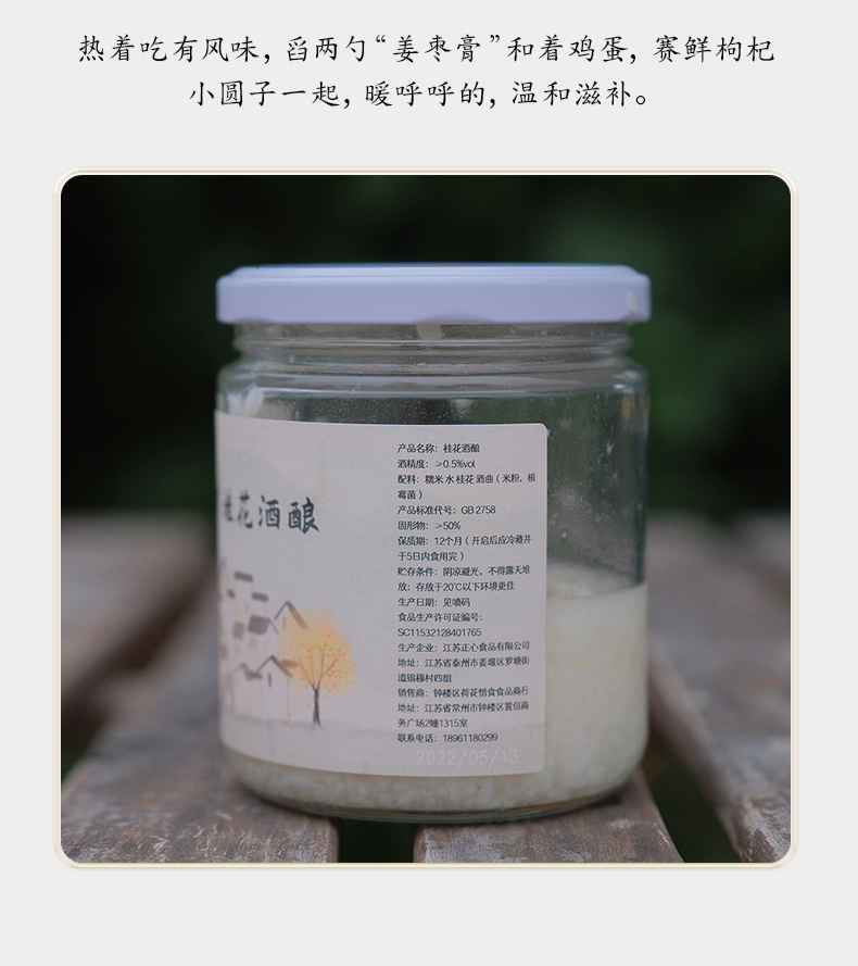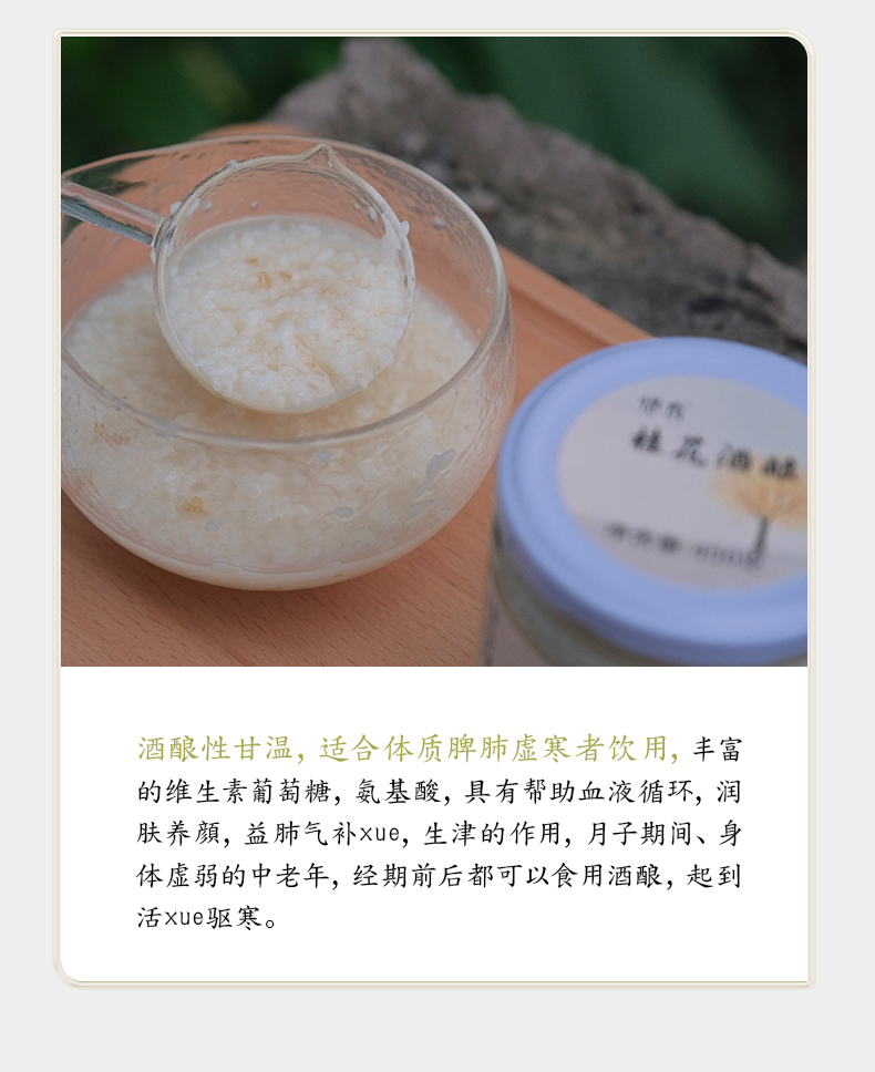 【桂花酒酿】醪糟手工自然发酵 无糖 柔和绵甜 无添加 450g/瓶 酒精度≥0.5%vol