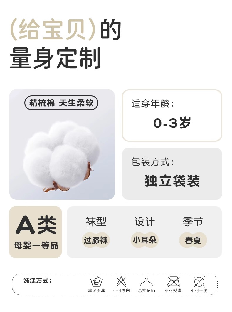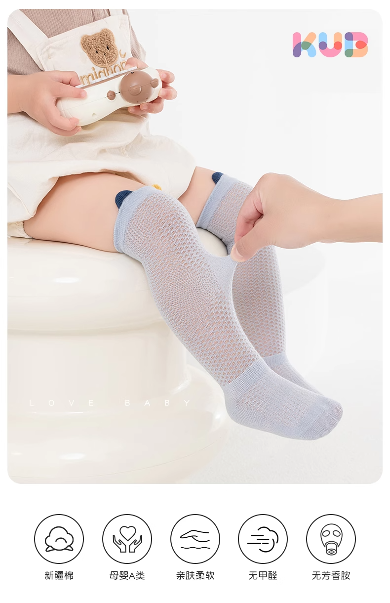 可优比婴儿长筒袜夏季薄款棉袜0到3月新生儿过膝防蚊袜宝宝不勒腿