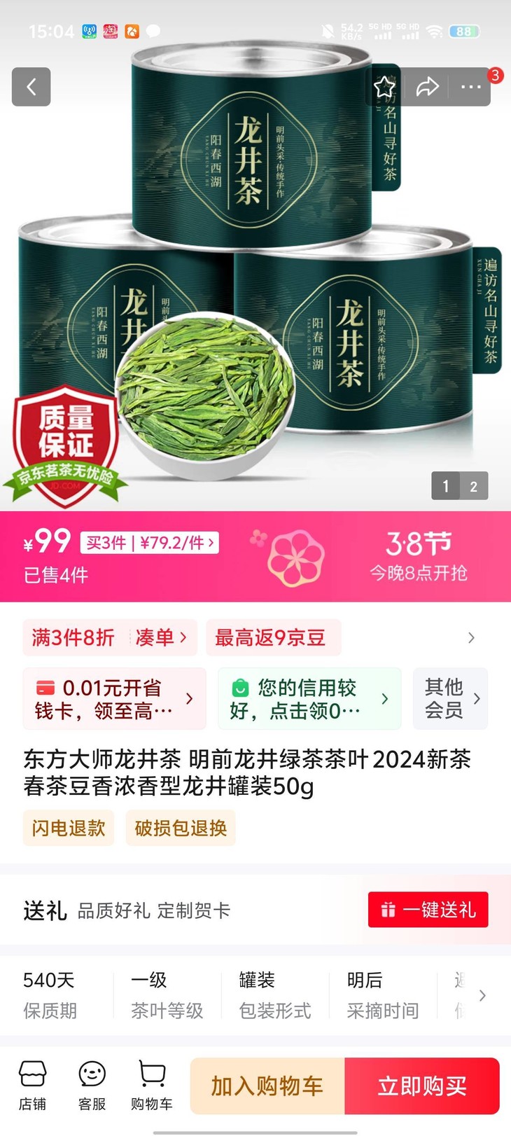 🔺只用明前早春新芽,延用传统手工古法制茶工艺 条索扁平光滑,嫩绿光润 香气鲜嫩清高,高雅深沉,茶香持久 120g盒装,开团价仅💰59.9 同等的品质和规格 去到现场买都要大几百元❗ 线下茶叶门店更是要去到大几千❗❗ 某多多更是一罐五六十 我们团购只需要 59.9,到手 4 罐 千万不要错过💢 💢 💢