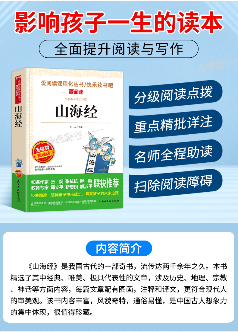 爱阅读 快乐读书吧 山海经 四年级上小学生彩绘版世界经典神话与传说 无障碍精读版 4年级上小学课外阅读书目