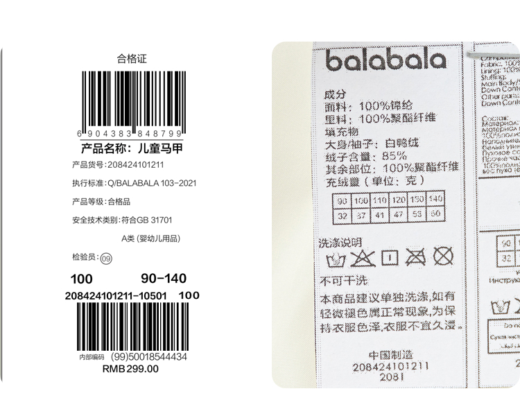 (合作款)巴拉巴拉童装儿童羽绒马甲 yb1103025
